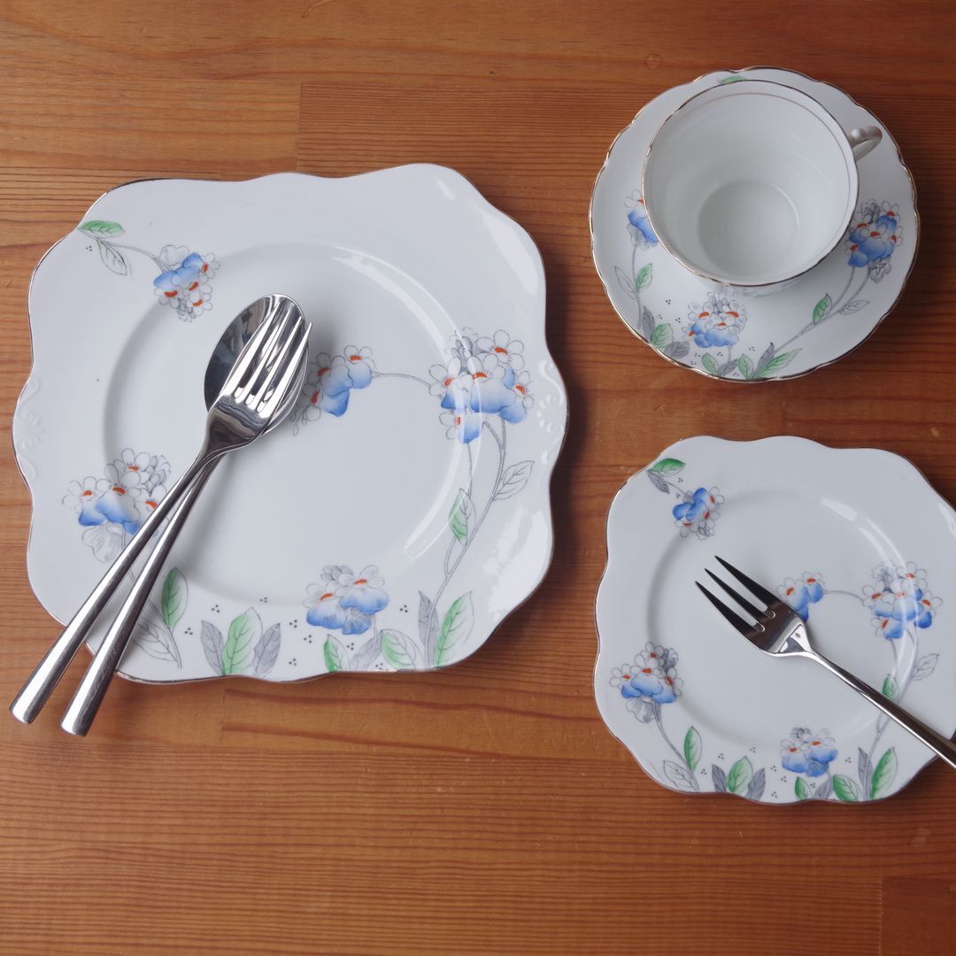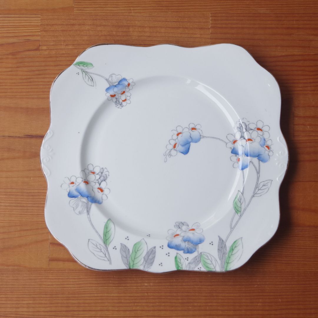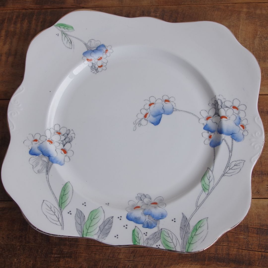 コルクラフ コルクロー Colclough ブルー 花柄 持ち手付き BB プレート 盛り皿 お皿 24cm #250207 イギリス ヴィンテージ アンティーク食器