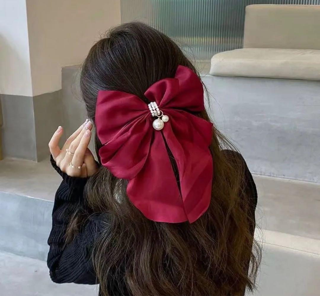 優雅さと華やかさを兼ね備えた、パールがアクセントになったヘアリボンです。上品な光沢を持つリボンに、細やかなパールをあしらうことで、シンプルながらも高級感を演出。結んだ髪に取り入れるだけで、瞬時に華やかな印象を与え、デイリールックや特別なシーンにもぴったりです。