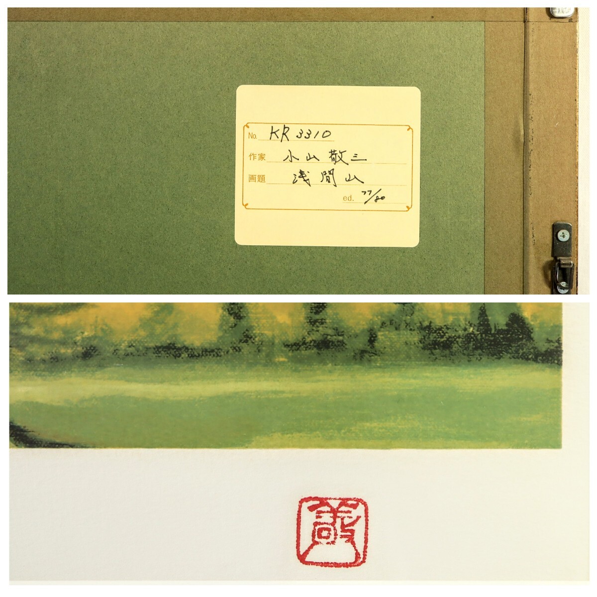 真作 小山敬三 リトグラフ「浅間山」画 45×33cm 長野県出身 日本芸術院会員 藤島武二に師事 軽井沢の別荘からの眺め 圧倒的な存在感 10359