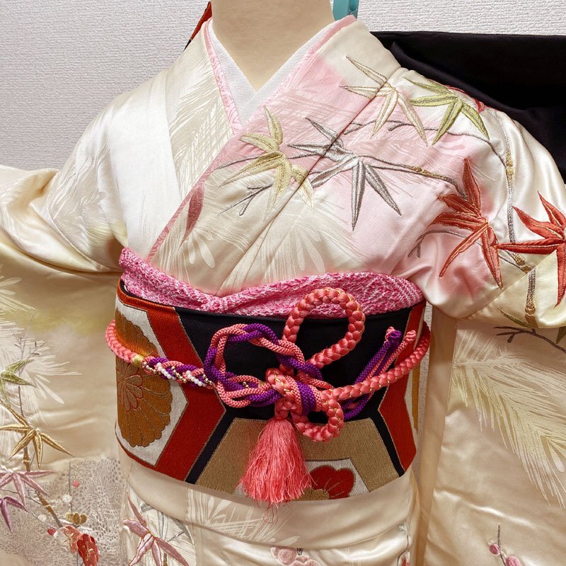 成人式や十三参りに、参列される結婚式や初釜のお茶会、お正月やお節句にいかがでしょうか?十三参りなどでお子様がご着用される際は肩上げのお直しをお願いいたします。 体形にもよりますが、身長132cm(裄を測ってください)から160cm程度、身体周りの一番太いところ(バスト、お腹周り、腰回りなど)が90cmぐらいまでがご着用の目安となります。 | ||