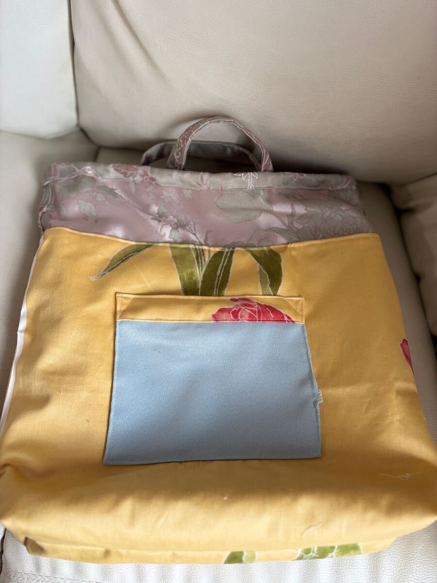 国産の有名メーカーのカーテン生地を使って、トートバックを作りました。
