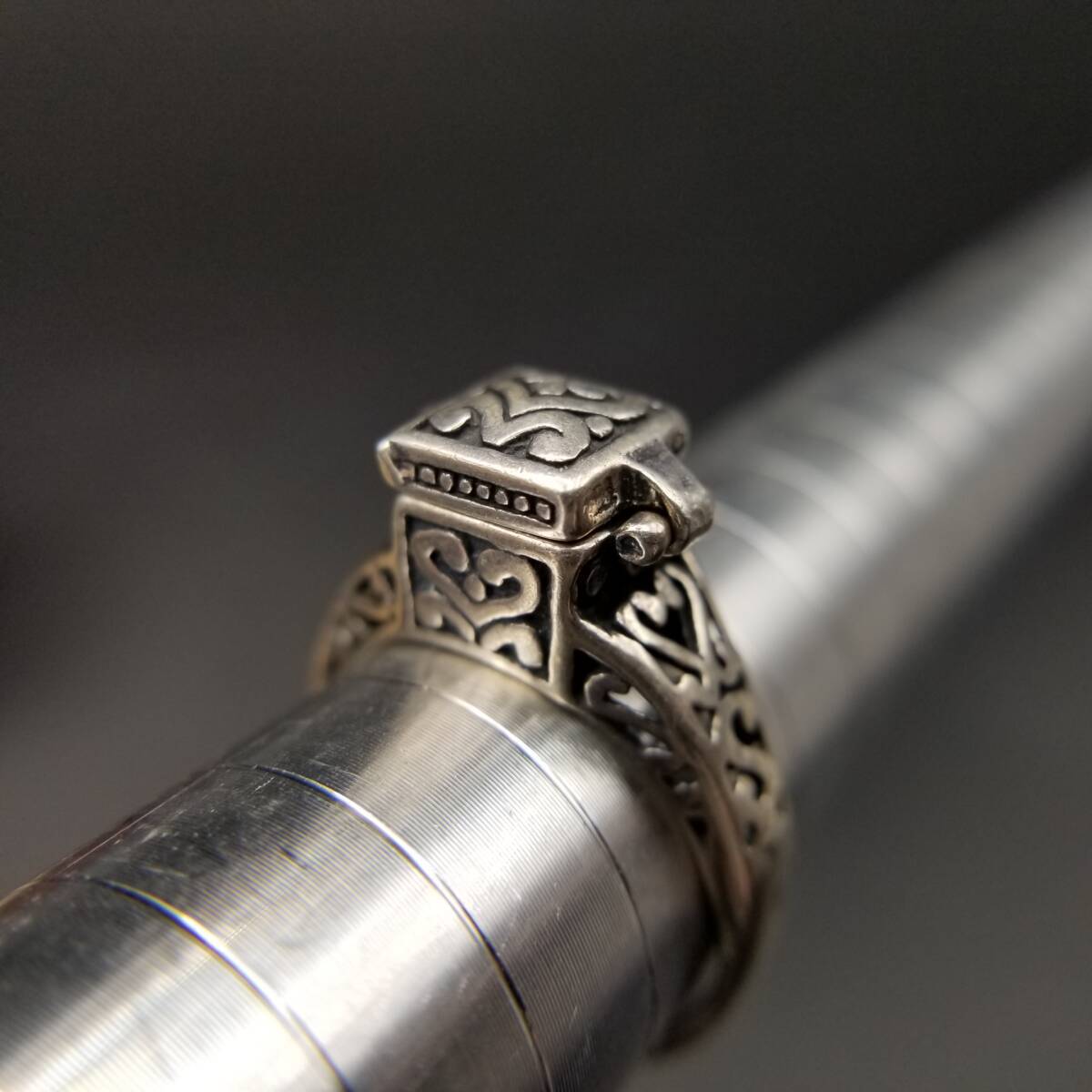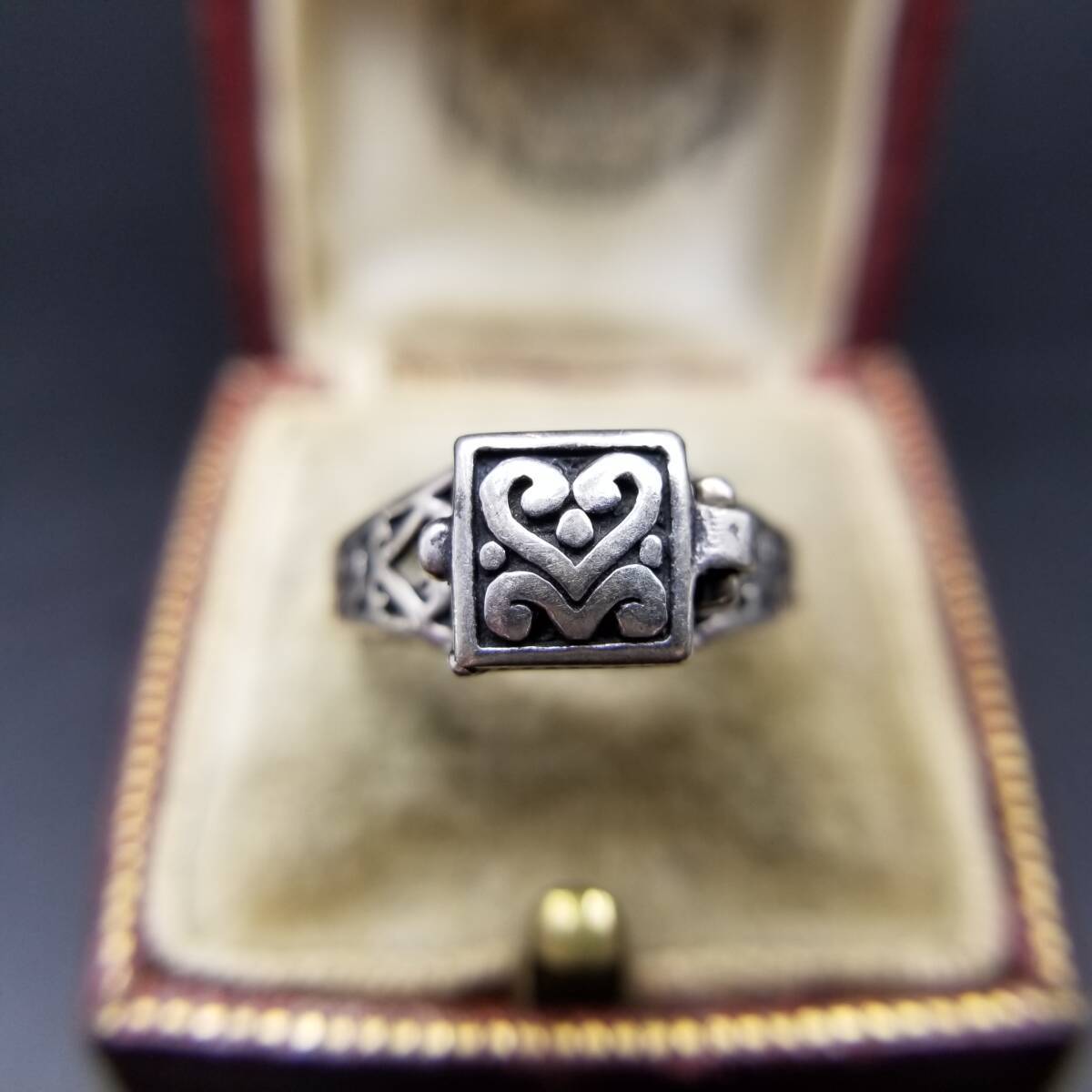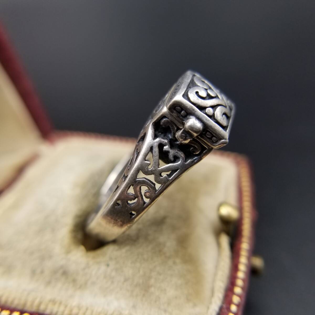 クラシック ハート オープンワーク 925 シルバー ヴィンテージ ポイズン リング 銀 指輪 ボックス型 唐草模様 透かし R14-R