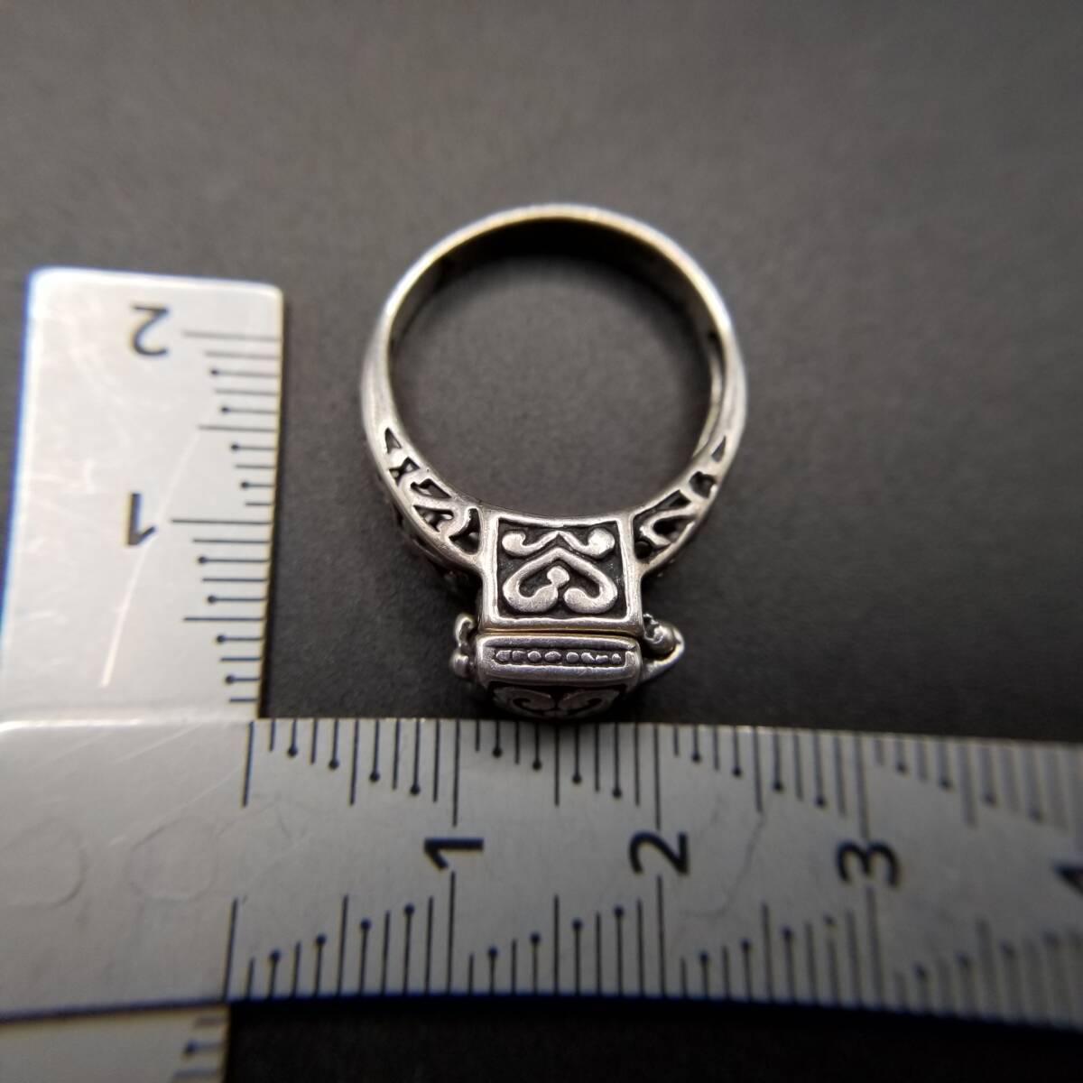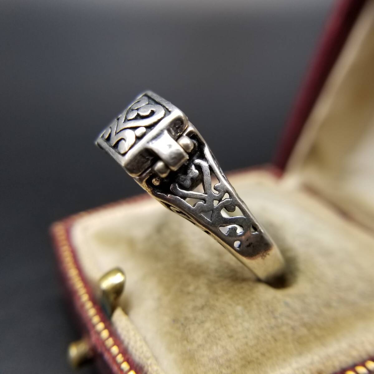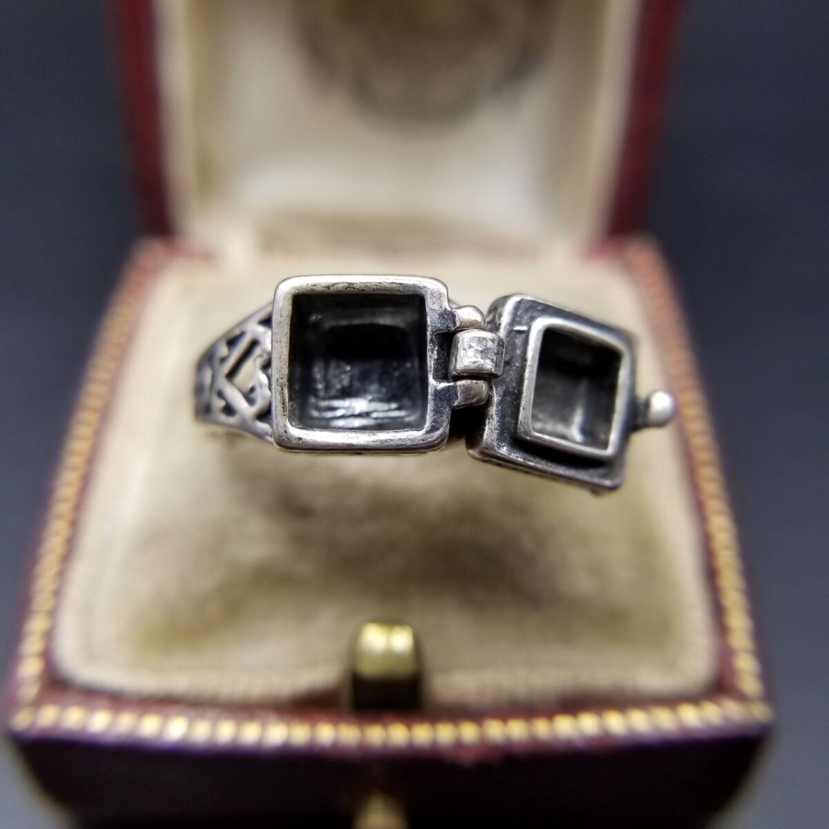 クラシック ハート オープンワーク 925 シルバー ヴィンテージ ポイズン リング 銀 指輪 ボックス型 唐草模様 透かし R14-R