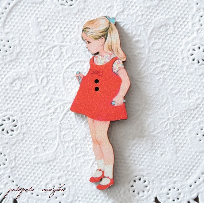 かわいい木製ボタンが入荷いたしました。ブロンドの女の子 です。