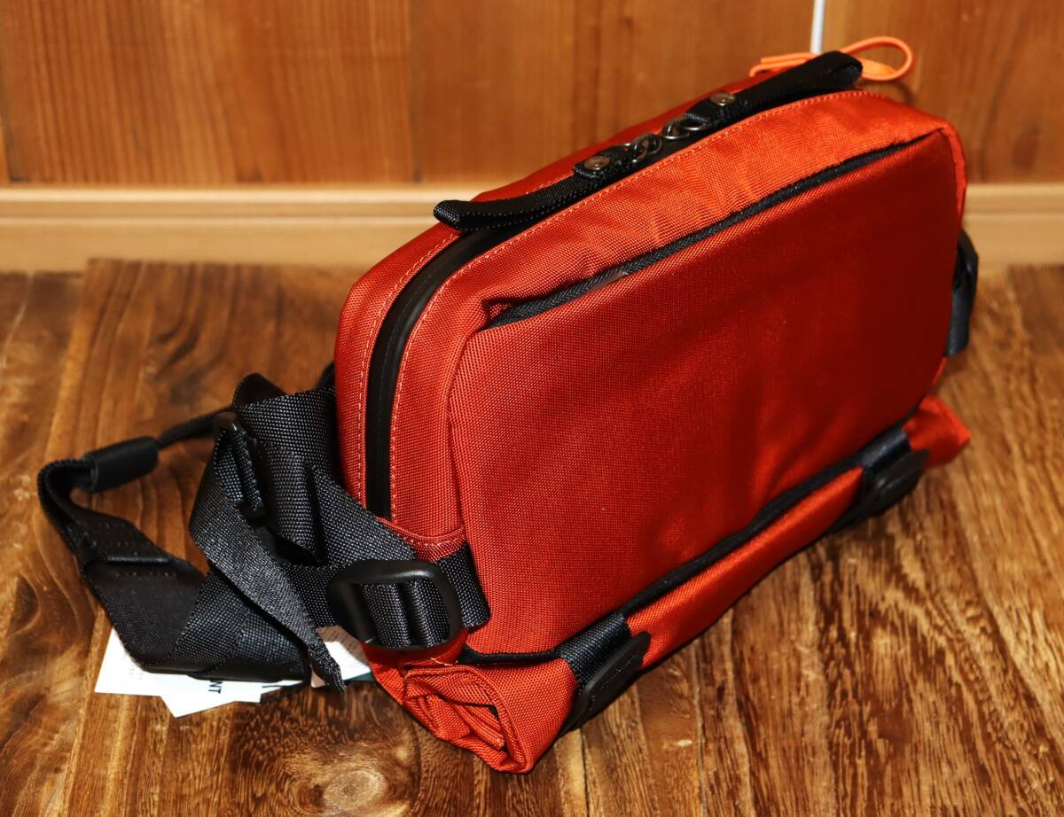 容量の拡張が可能な、イズイットのワンショルダーバッグ。