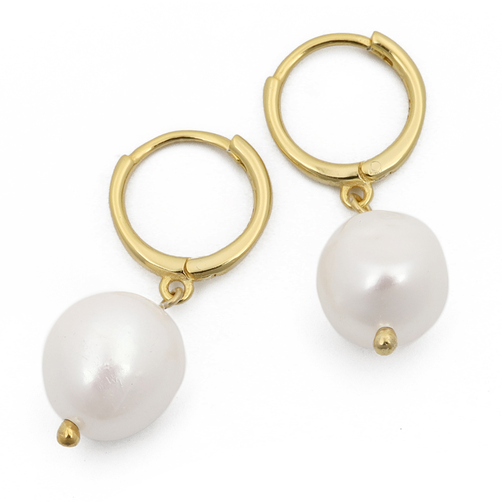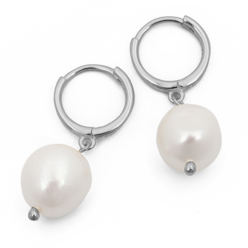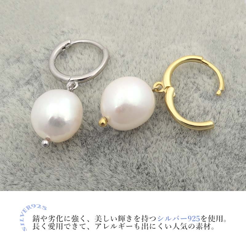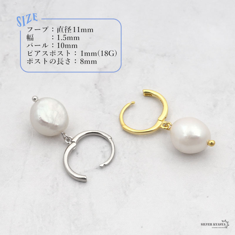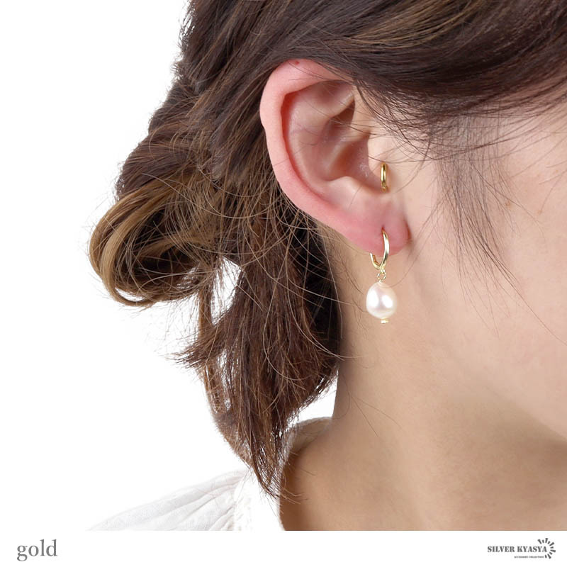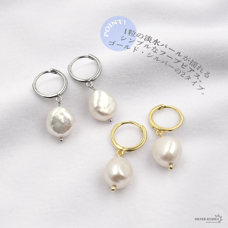 1粒の淡水パールが揺れるシンプルなフープピアス。
