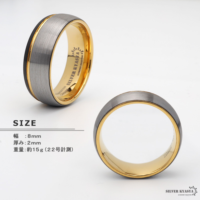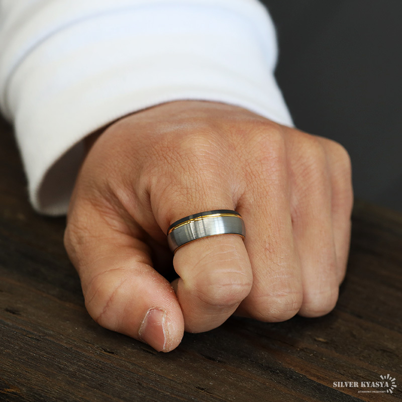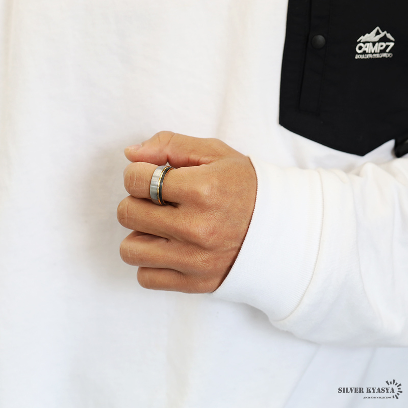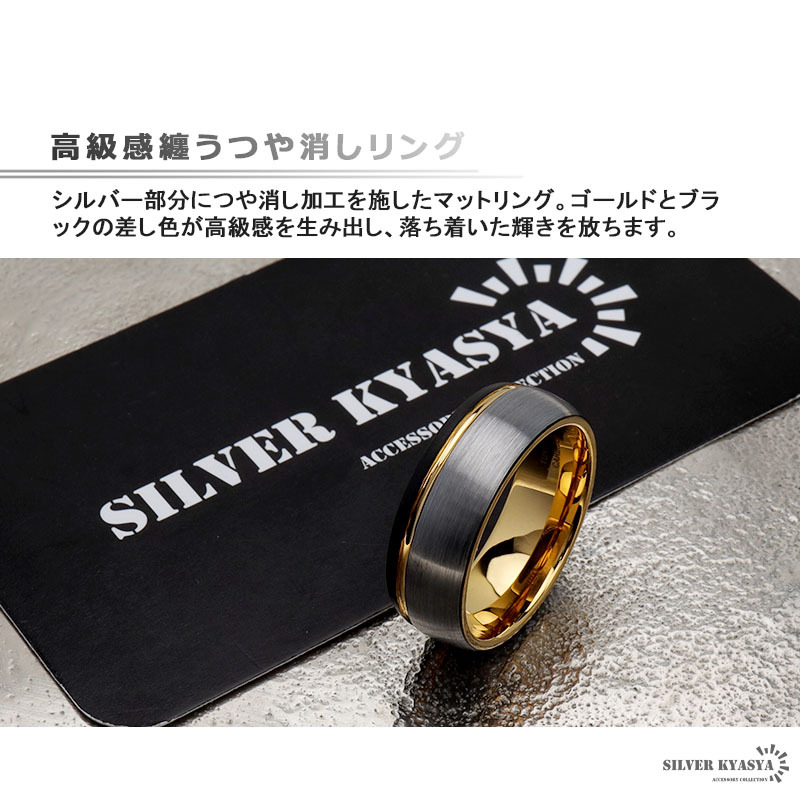 シルバー部分につや消し加工を施したマットリング。ゴールドとブラックの差し色が高級感を生み出し、落ち着いた輝きを放ちます。S