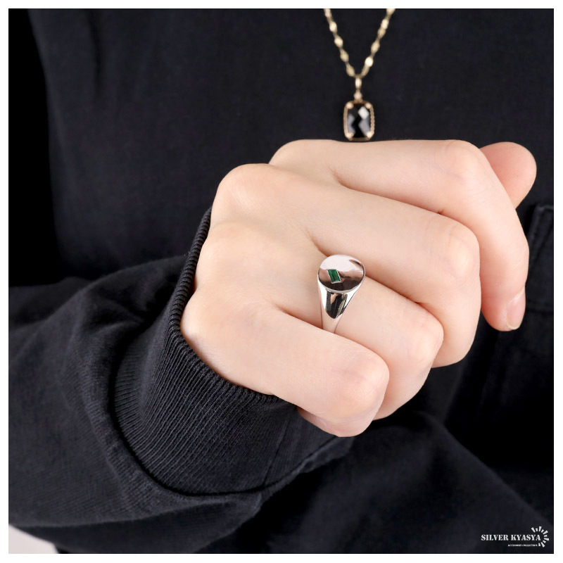 ■シンプルなリングに、埋め込まれたストーンが静かに輝く個性的なアイテム。