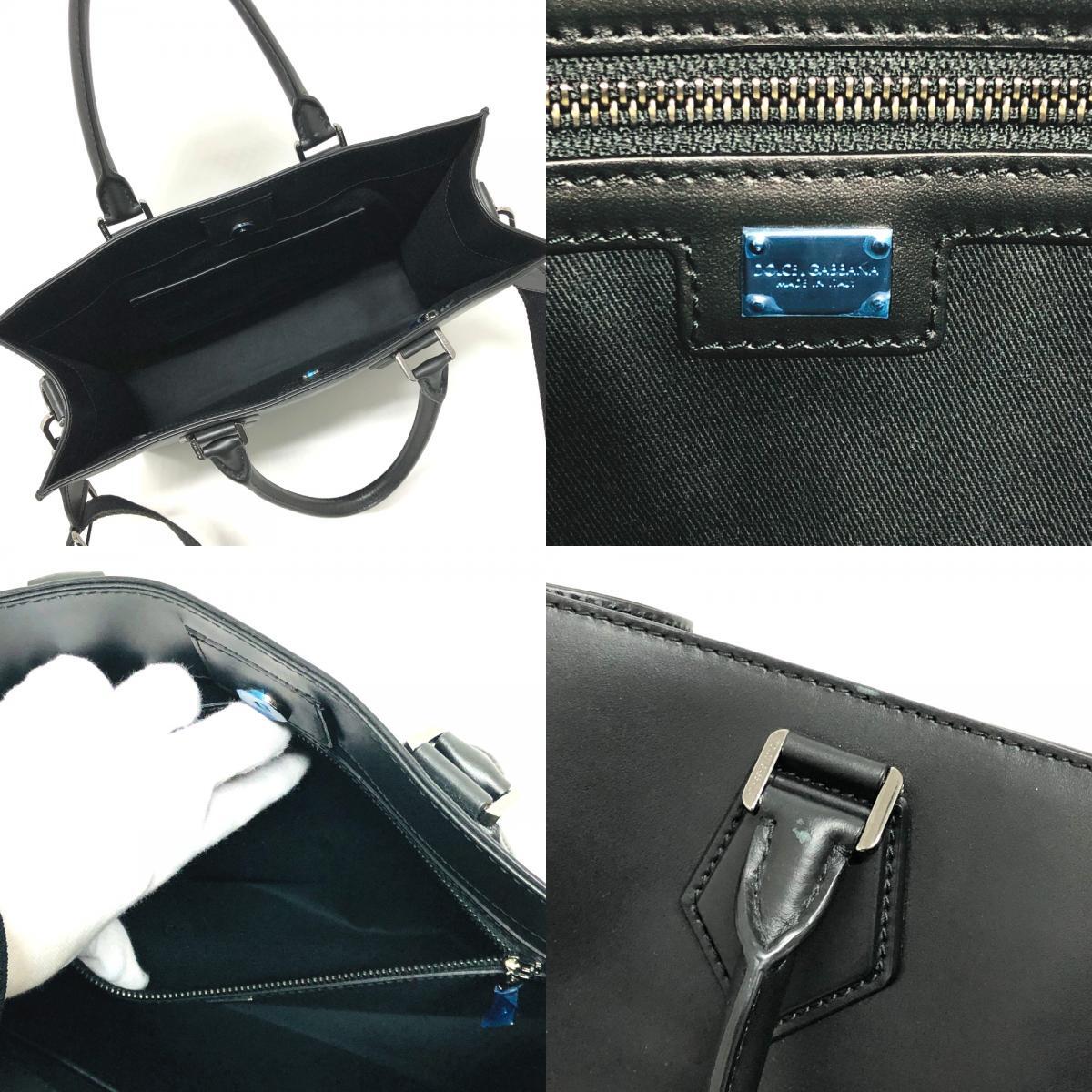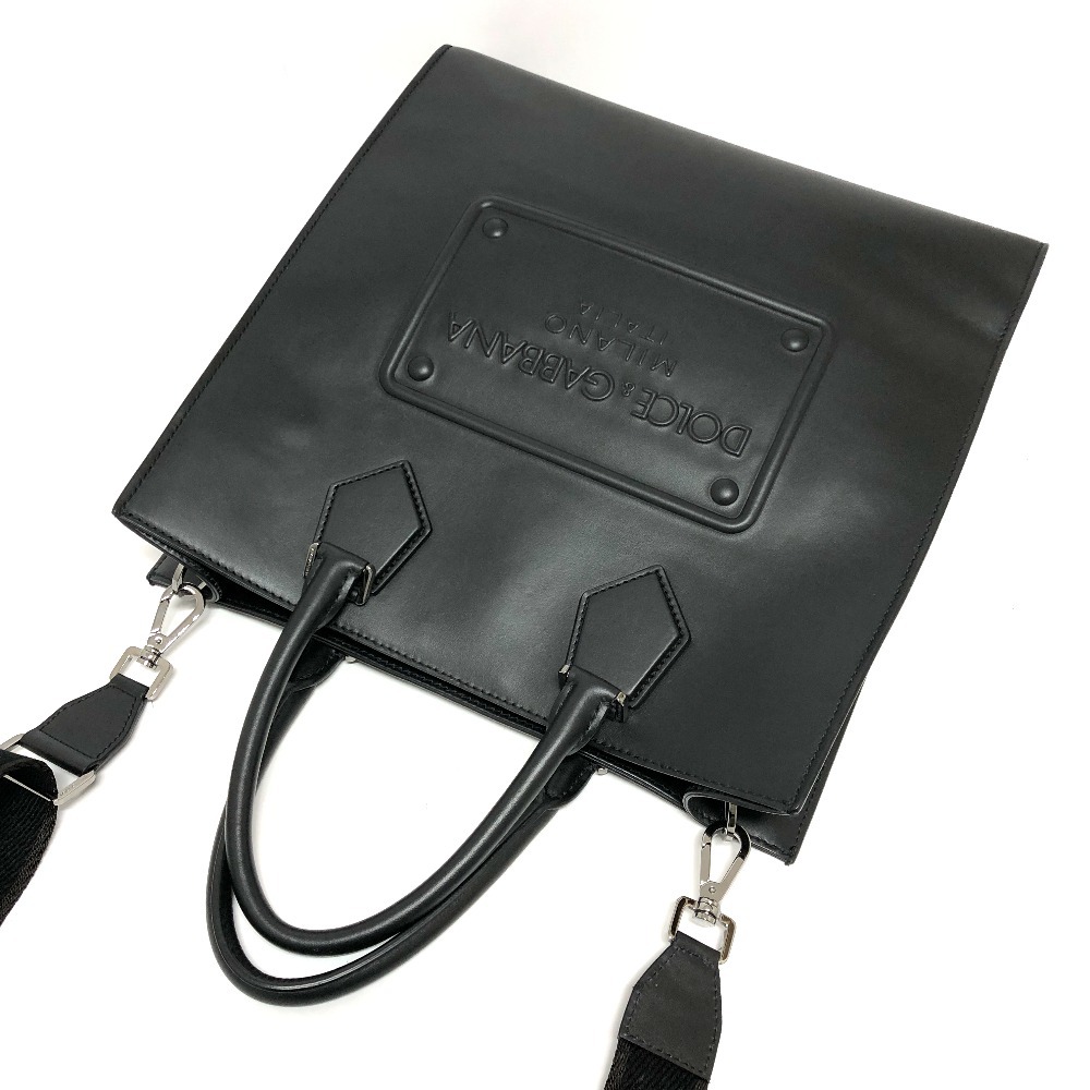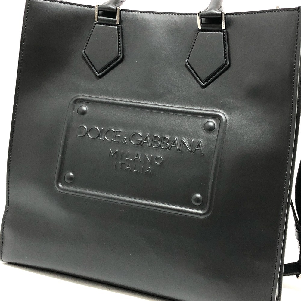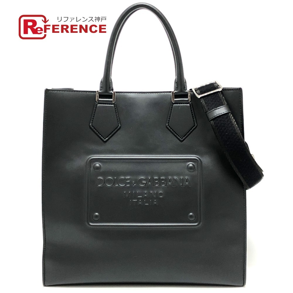 DOLCE&GABBANA ドルガバ ロゴ エンボス カバン 2WAY ハンドバッグ ショルダーバッグ スクエア トートバッグ ブラック メンズ【中古】