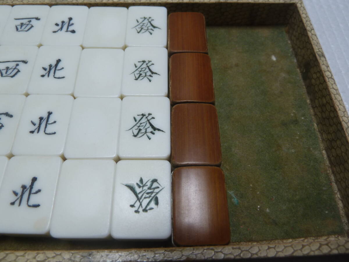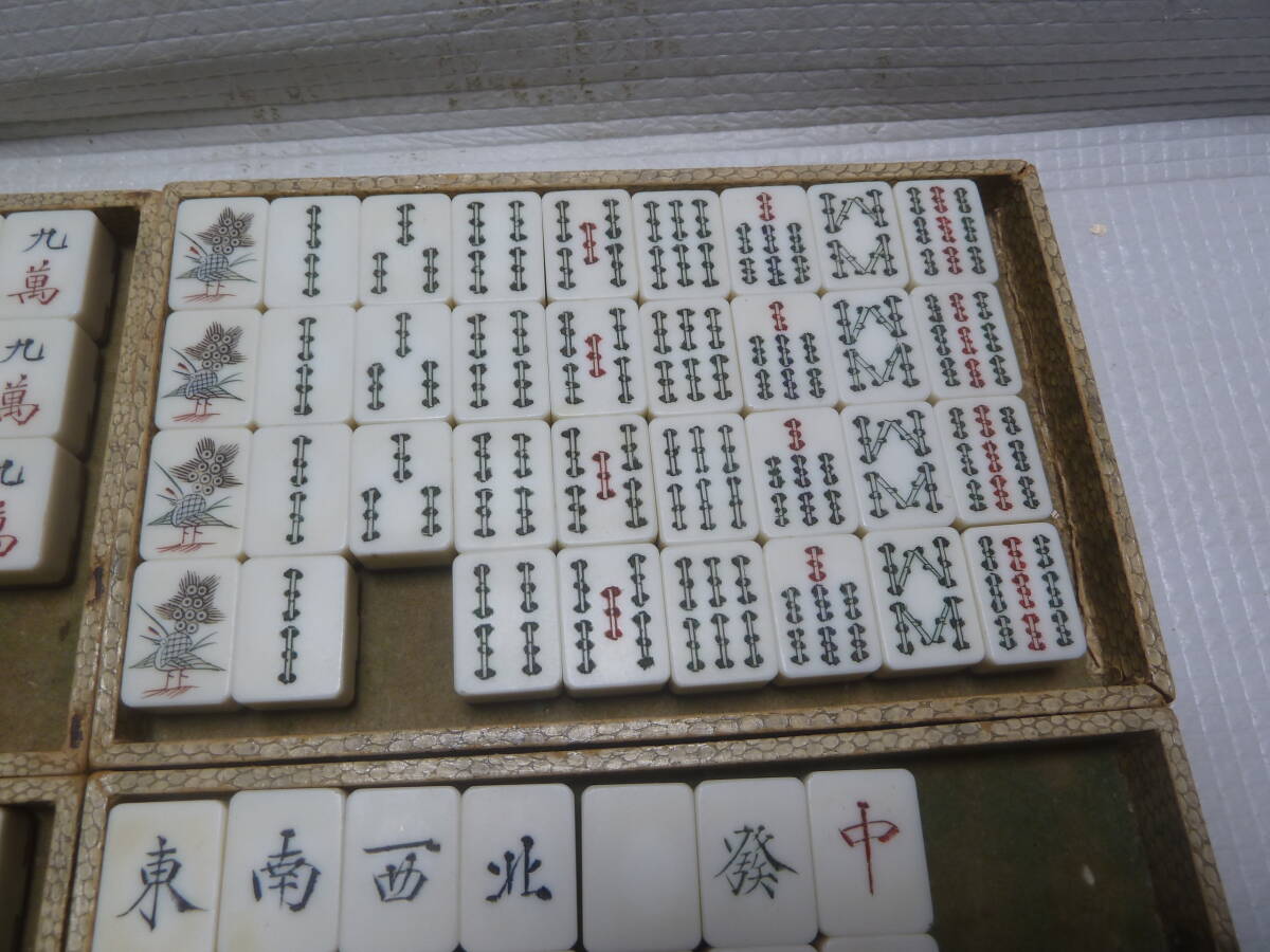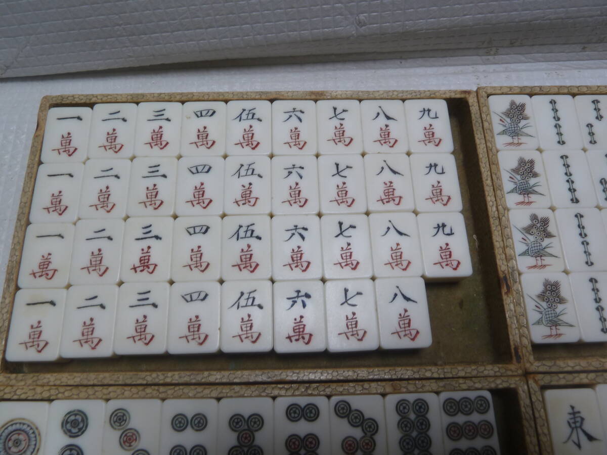 マージャン牌、点棒ともに全て不揃いです。 ジャンク品です。 サイズ(約):横幅 29.8cm×奥行 19.5cm×高さ 4.5cm 付属品 ・画像1枚目に写っている物が全てです。 その他の付属品はありません。 状態 ・全体にキズ、汚れ、変色などダメージ目立ちます。 ・点棒は違うマージャン牌の点棒も混ざっています。 ・ケースはキズ、汚れなどダメージ目立ちます。 | ||||