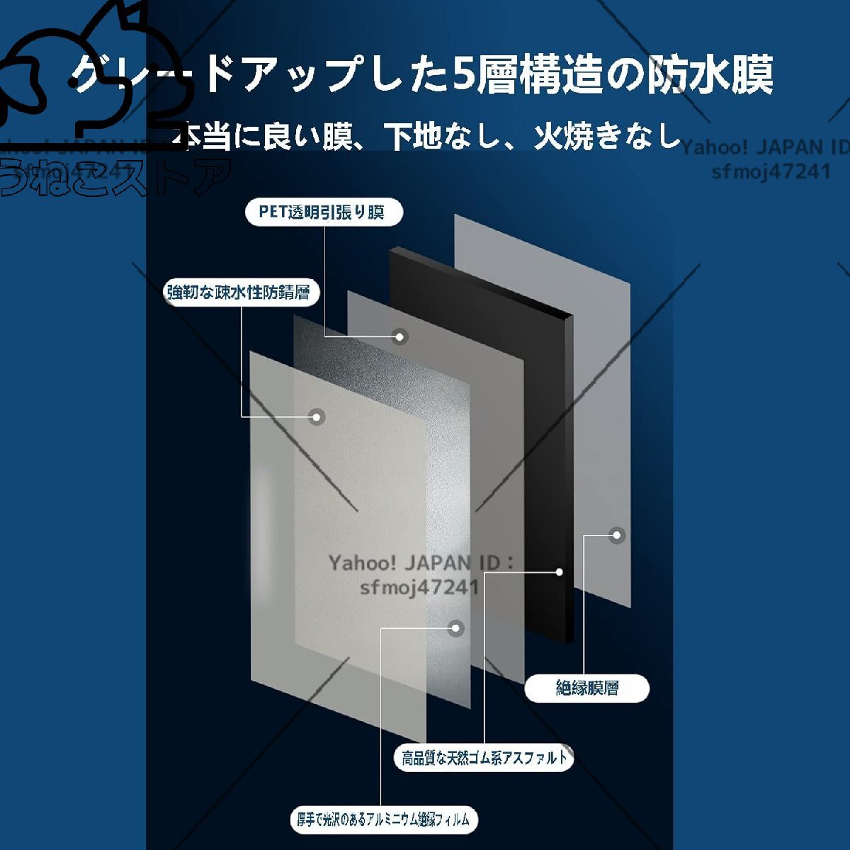 ?グレードアップした5層構造の防水膜?本当に良い膜、下地なし、火焼きなし?PET透明引張り膜?強靭な疎水性防錆層?絶縁膜層?高品質な天然ゴム系アスファルト?厚手で光沢のあるアルミニウム絶縁フィルム?防水性だけでなく、断熱性にも優れ、凍結を恐れず、高温を恐れない。???シナリオ用防水膜。サンルーム目地/屋根目地/コーナーラップ/キャリッジトップ/窓台エッジジョイント/屋根防水全般寸法(幅1m×厚さ1.5mm) (15m)?使用方法は、お掃除して貼るだけ!1.設置作業前に掃除するご使用前に補修表面を掃除をし、地面が乾いていることを確認してください。2.防水シートを貼る接着面のフィルムを剥がし防水シートを設置します。転がしながら貼っていきます。※補修面にゴミや汚れがあると、剥がれやすくなります。満足のいくサービス当社の製品についてご不明な点がございましたら、アフターサービスの問題を解決するために、当社のカスタマーサービスにお気軽にお問い合わせください。 いつでもご連絡いたします。