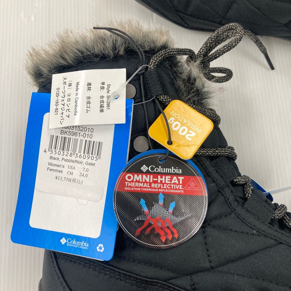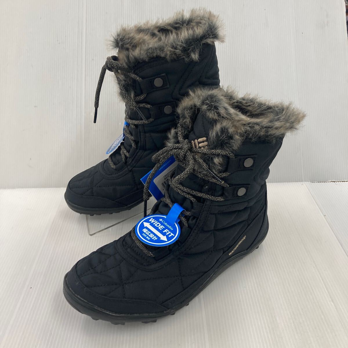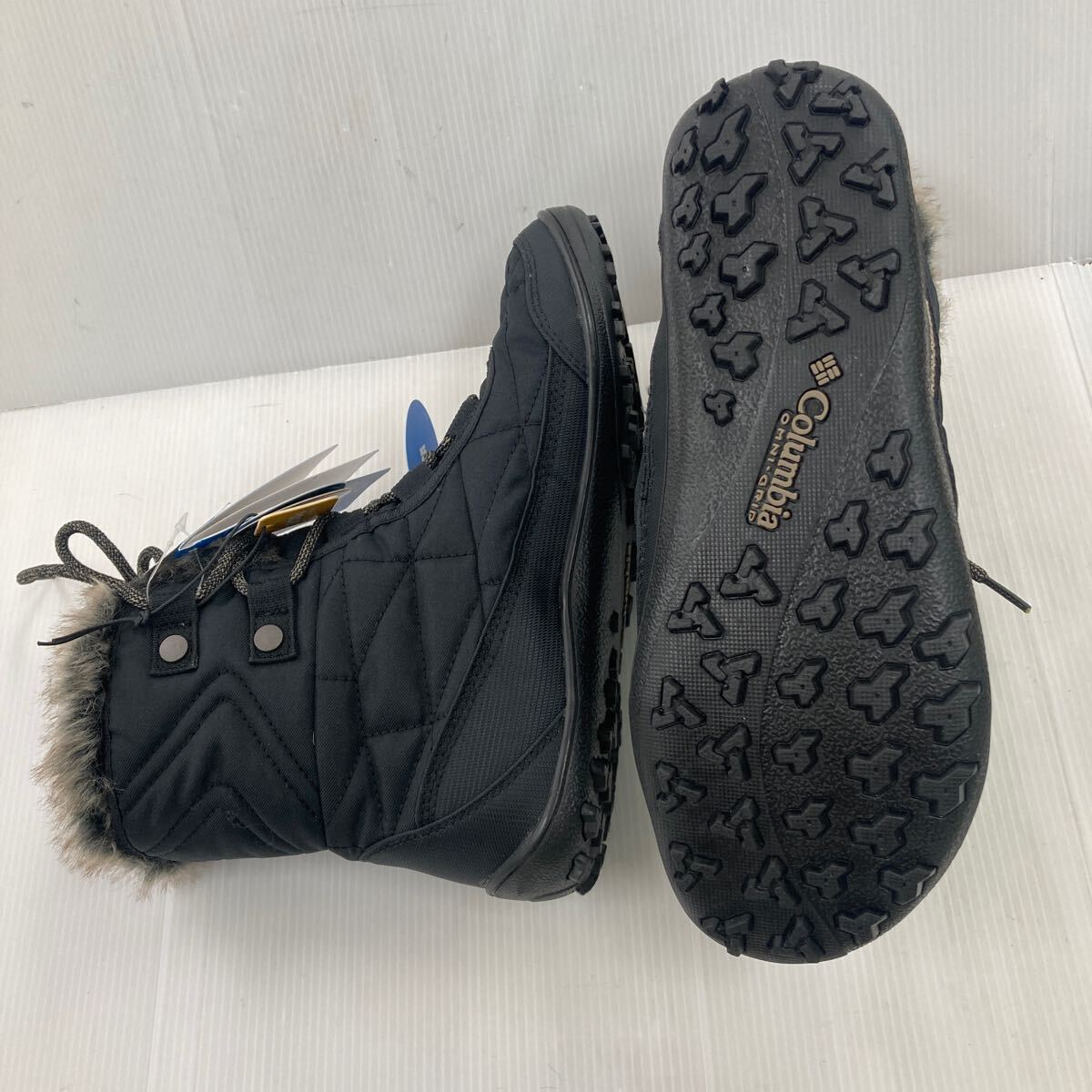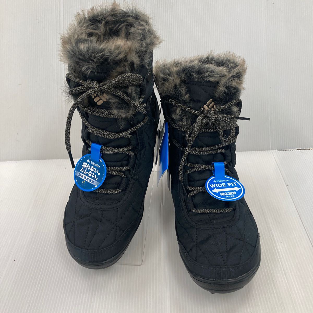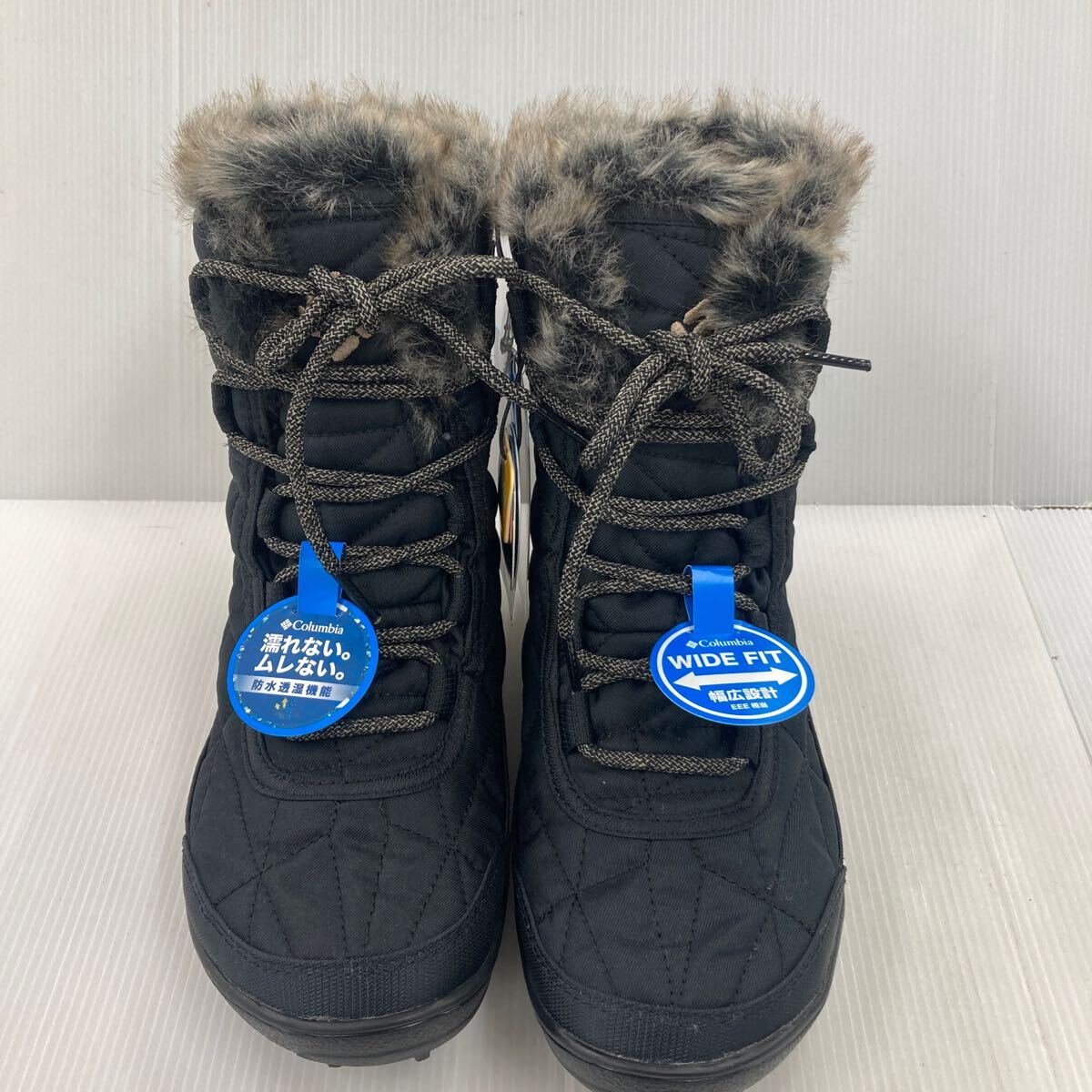 お買い得★Colombia ボア付き編み上げブーツ BK5961-010 ブラック 24.0cm 幅広EEE設計 防水透湿機能 中敷きカップインソール