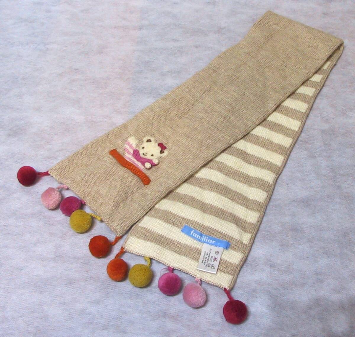 familiar /ファミリアのマフラー&手袋セットです。マフラーはベージュ&ピンク系、手袋はレッドです。手袋に多少の汚れありますが、綺麗なお品です。サイズ:マフラー⇒縦12㎝x横84~87.5㎝、手袋⇒縦15㎝x横7㎝x親指部分4㎝。送料は定形外450円、レターパックプラス600円になります。値下げしました!