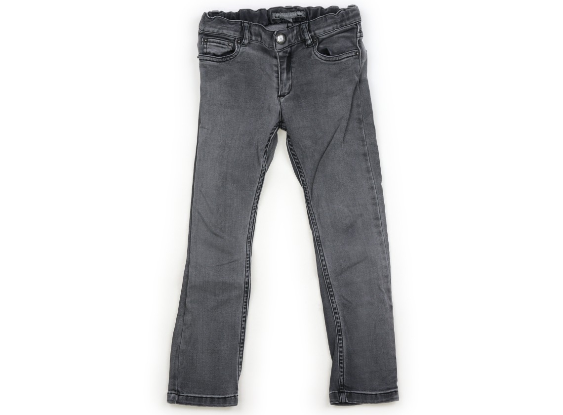 実際のサイズ表記は4。ウエストはサイズ調整ゴムが付いています。前ホック、ファスナー。元々のデザインもありますが、色褪せやダメージあり。洗いざらし感あり。膝やヒップが擦れて白っぽくなっています。まだまだ普段着として活躍してくれそうです。