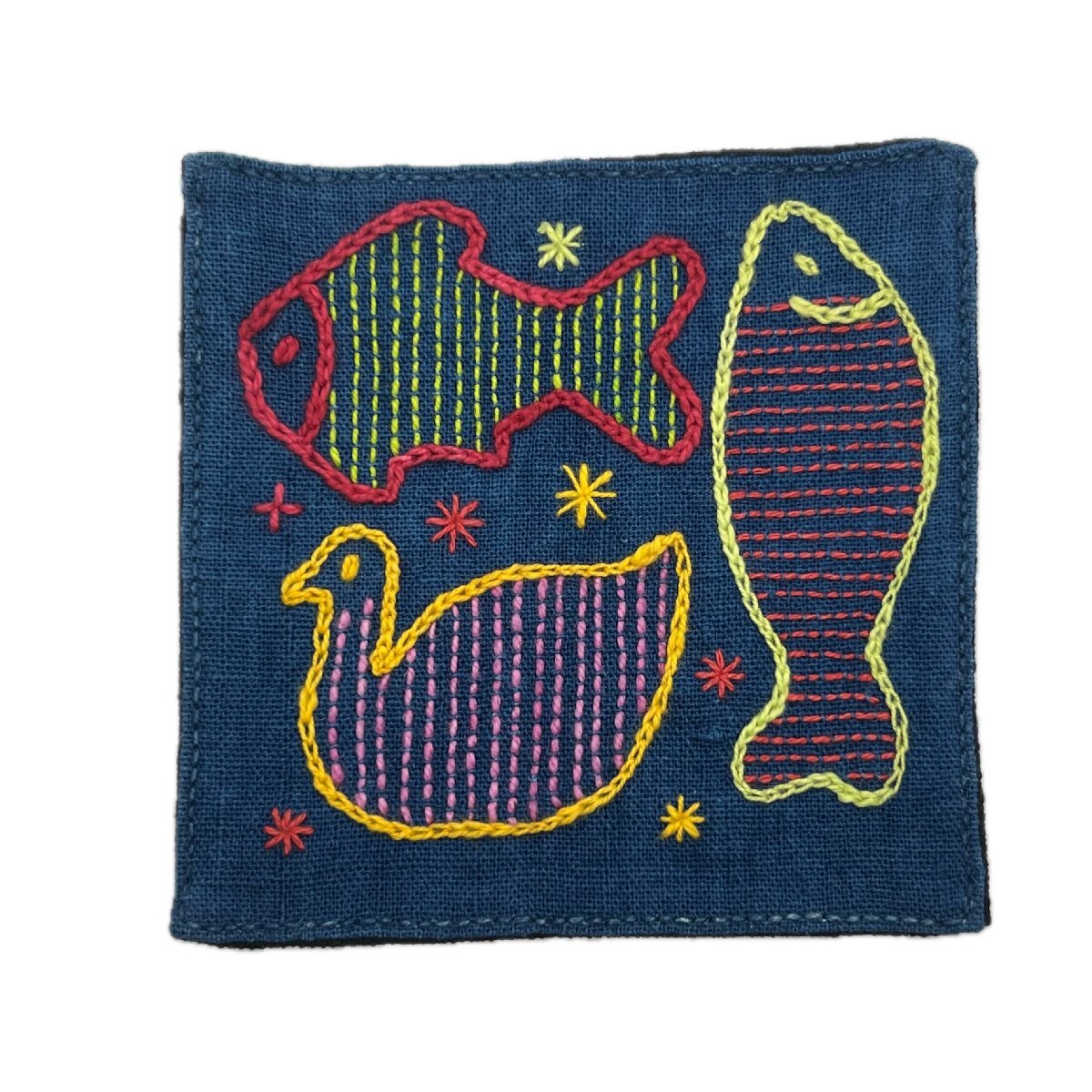 エスニックモチーフ刺繍 アジアン雑貨手芸材料 プリミティブアート ハンドメイドコースター ラオスレンテン族 動物 鳥 魚
