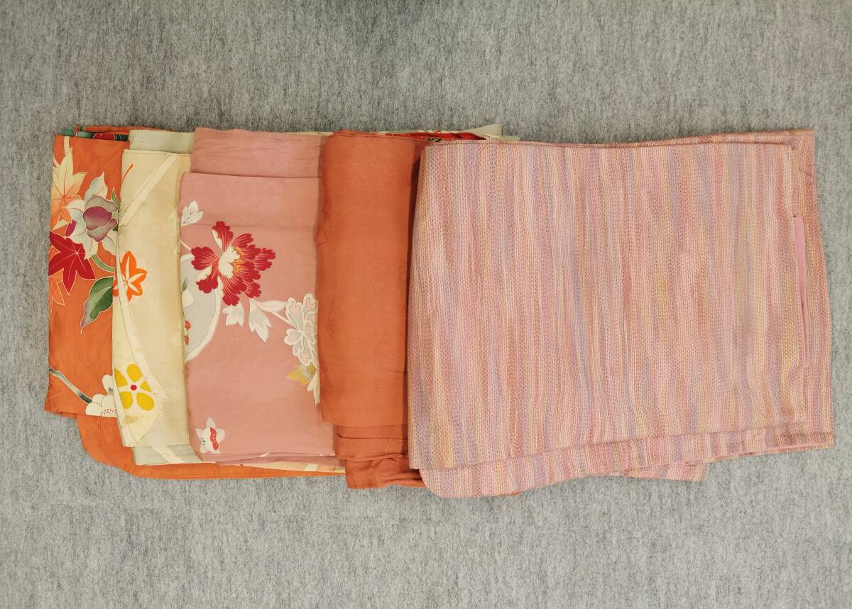 女性着物 福袋 5枚 ピンク系多め 小紋・柄物 ミックス ★169