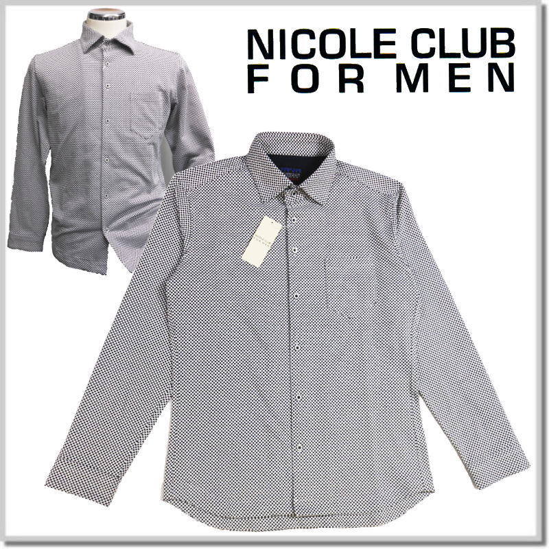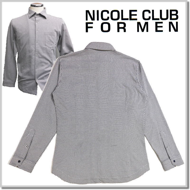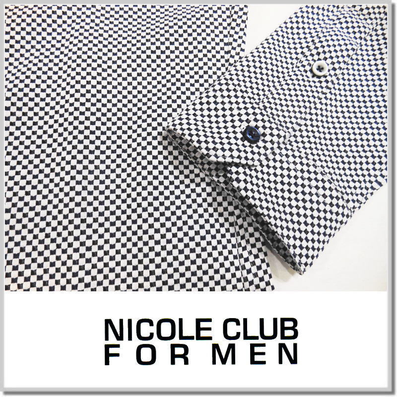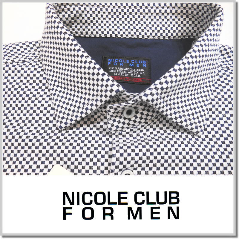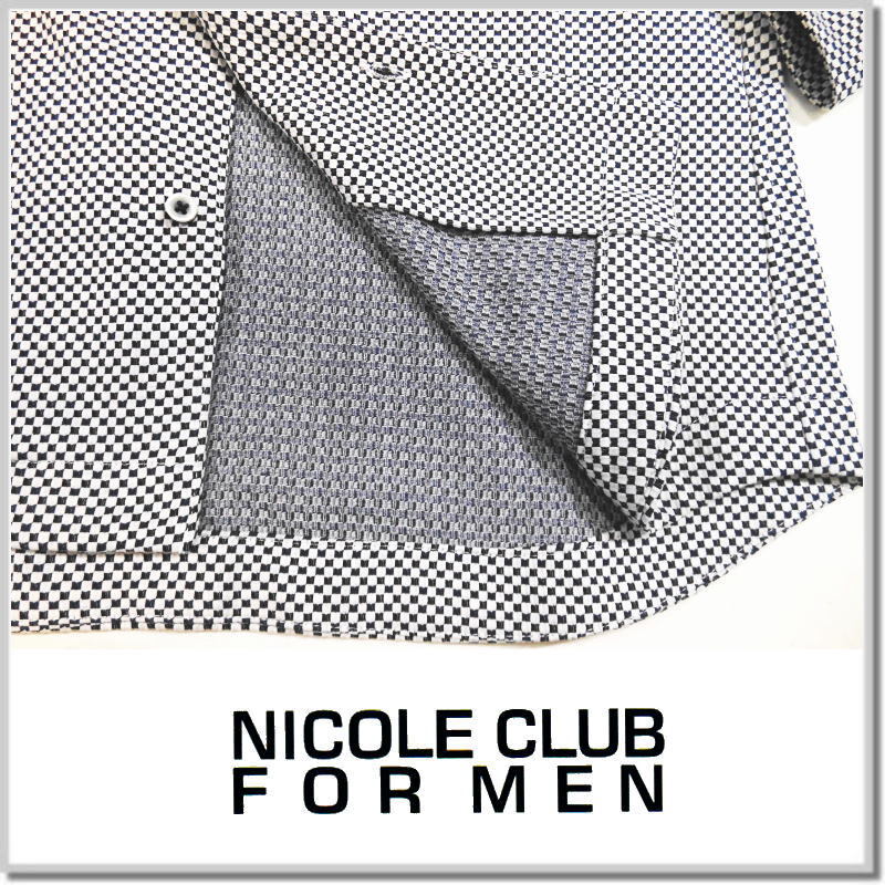 新品未使用! ニコルクラブフォーメン NICOLE CLUB FOR MEN ニットサッカーチェックシャツ 5164-8001-97-46(M) レギュラーカラーシャツ