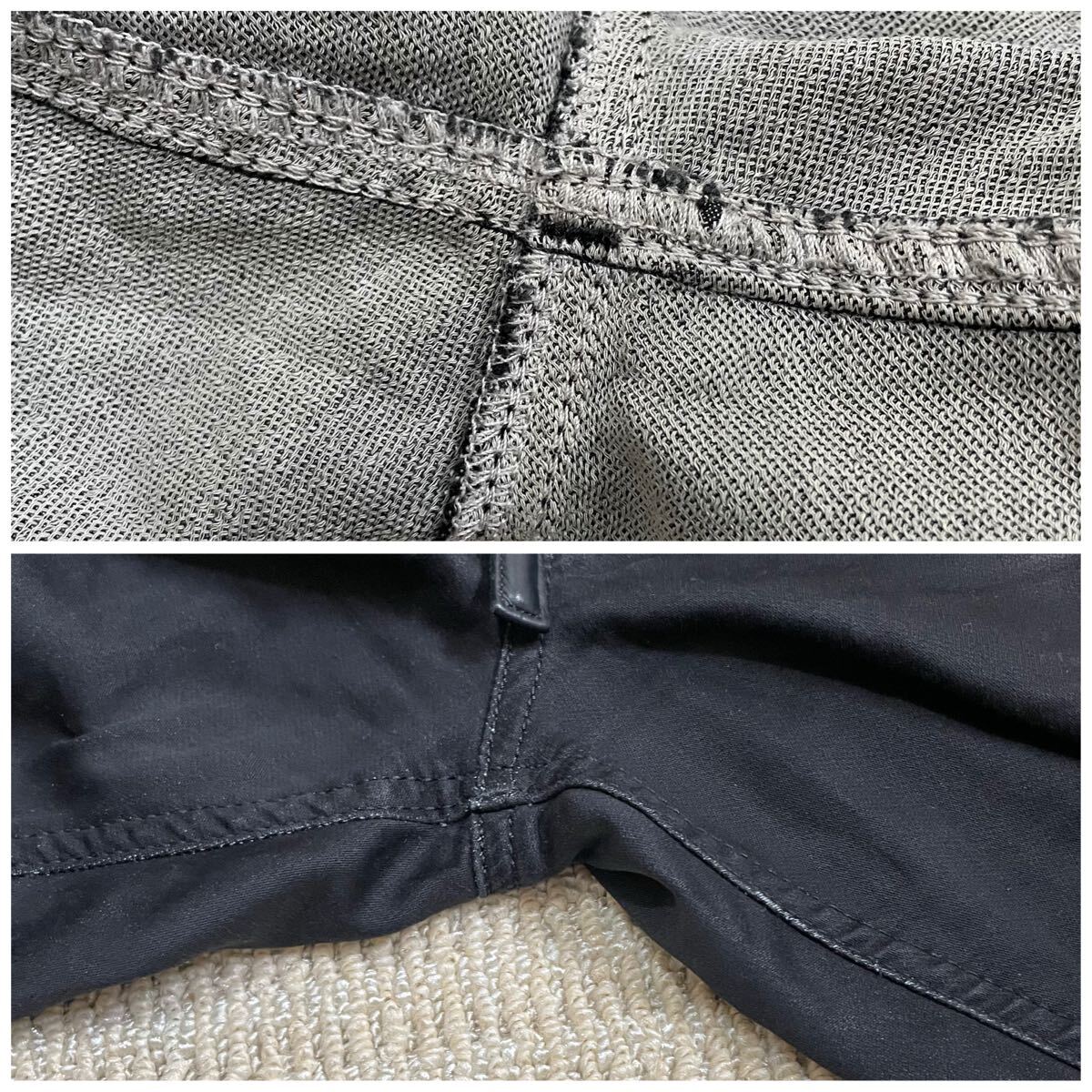 裏地のスレはお尻付近のポケット縫い目裏、股に少しあり。ヒザ裏にはありません