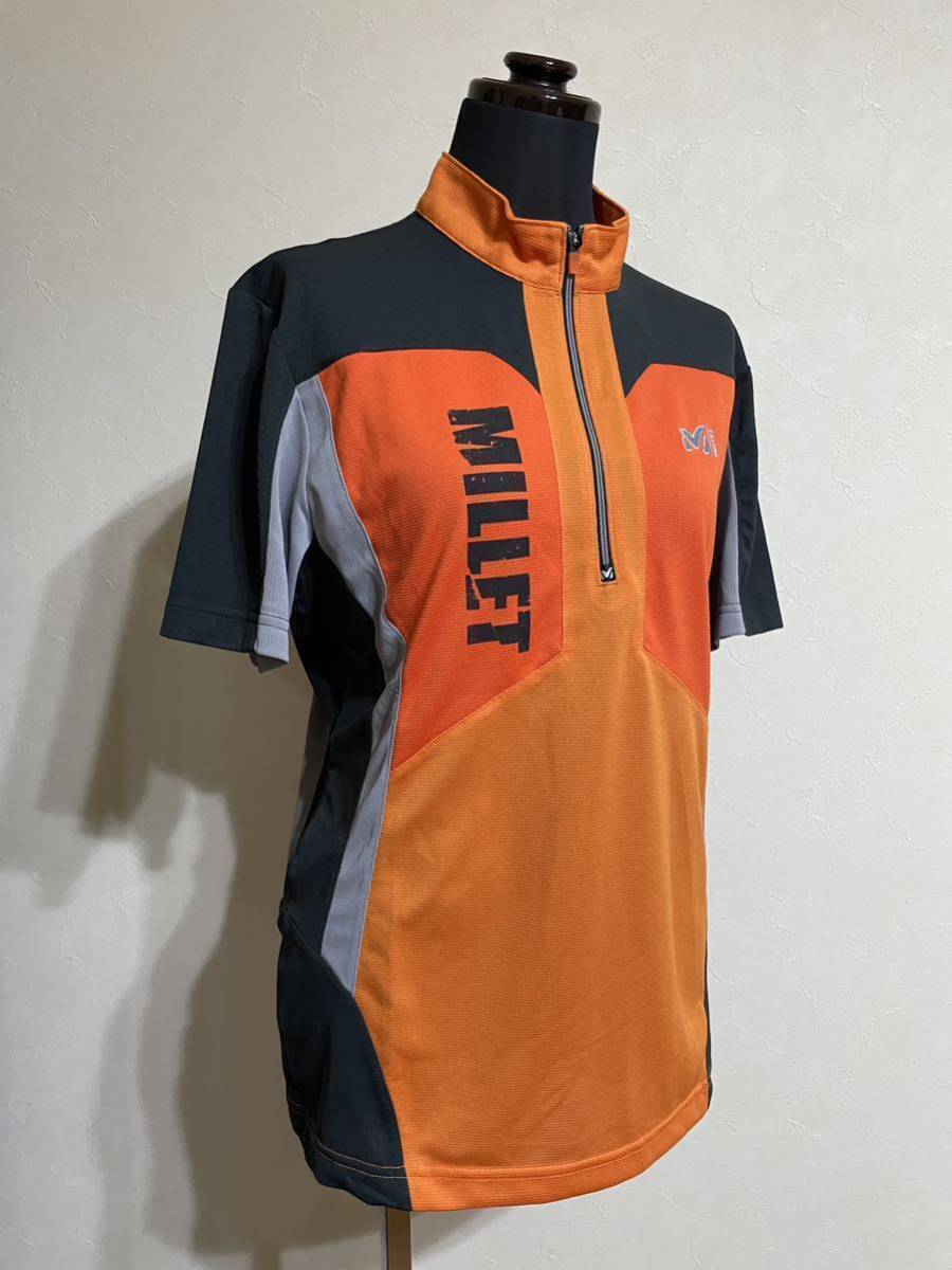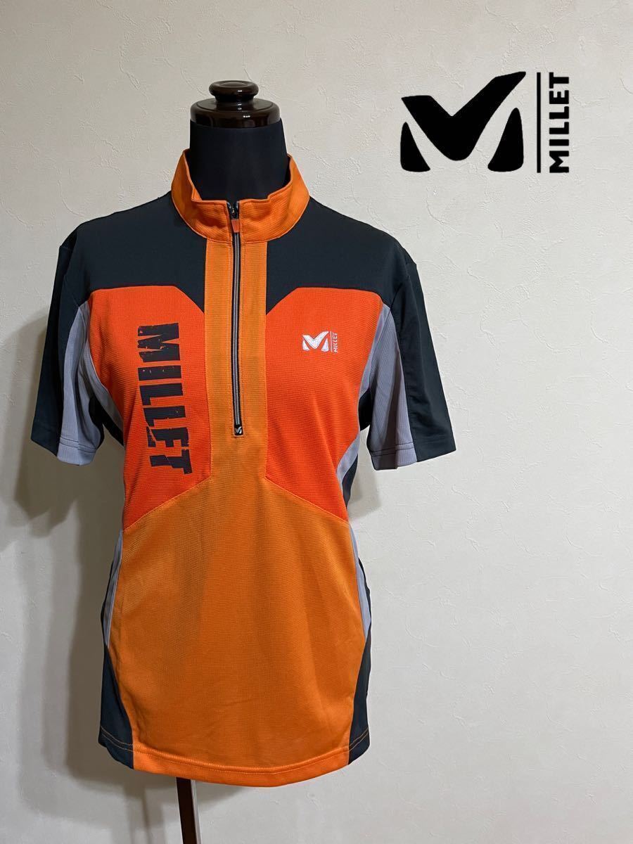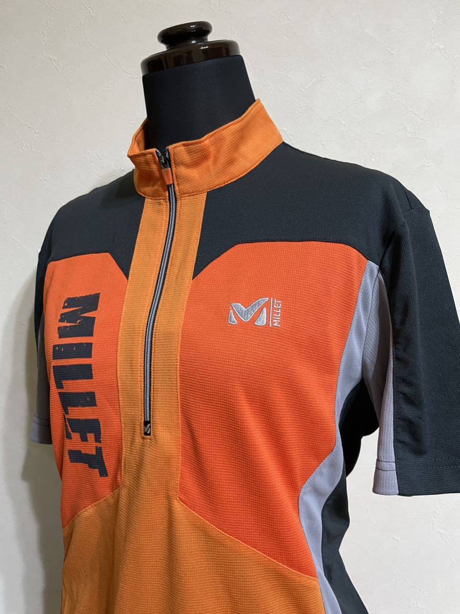 【未使用品】 MILLET ミレー アウトドア レディース ハーフジップ プルオーバー ドライウェア トップス サイズ90 (S) 半袖 オレンジ グレー