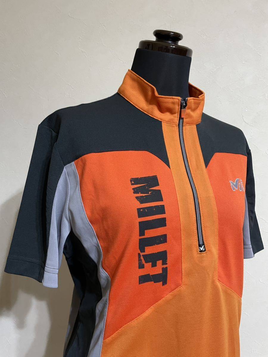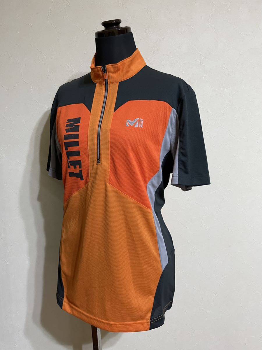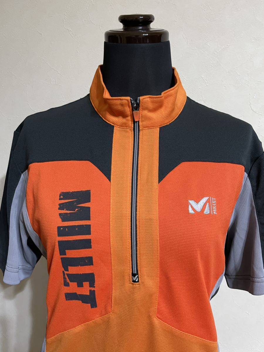 【未使用品】 MILLET ミレー アウトドア レディース ハーフジップ プルオーバー ドライウェア トップス サイズ90 (S) 半袖 オレンジ グレー