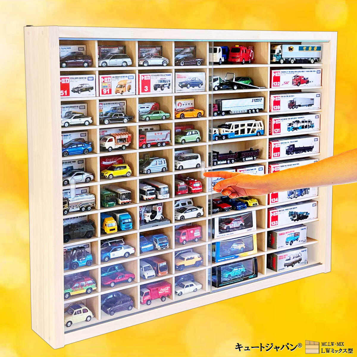ダンボール箱などに眠ったままのミニカーを惹きたてるディスプレイケースです。