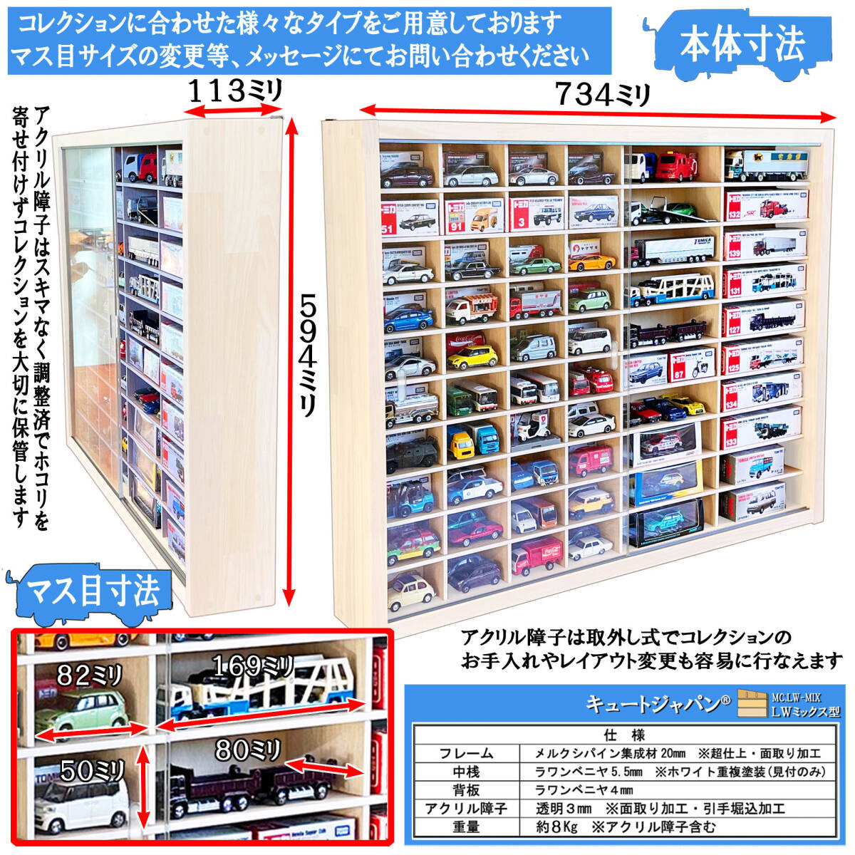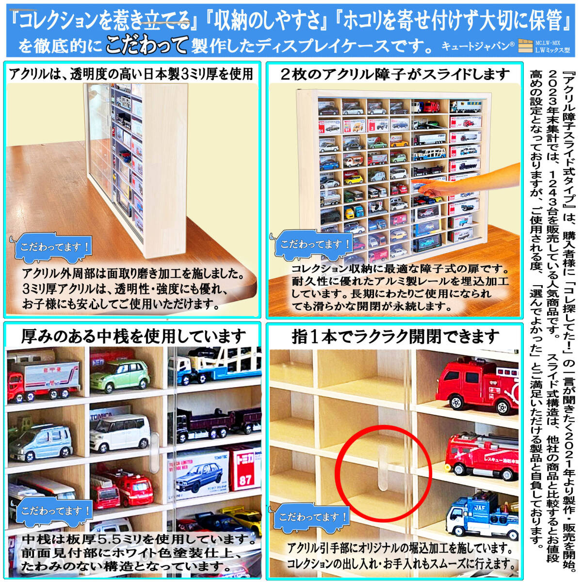 アクリル障子は透明度が高く、大切なコレクションをホコリや傷から守ります。
