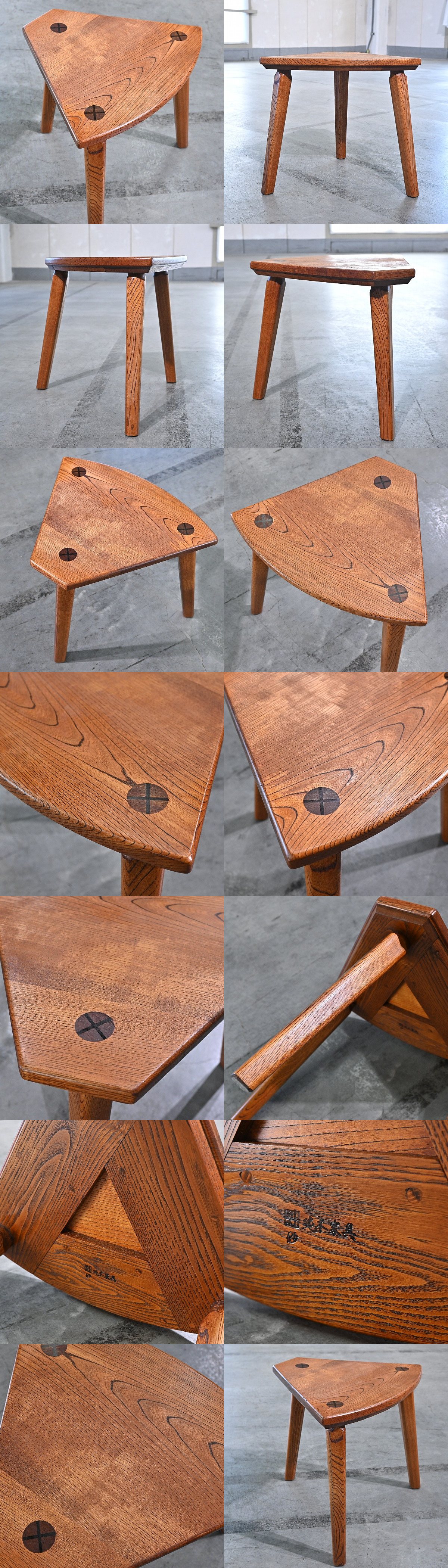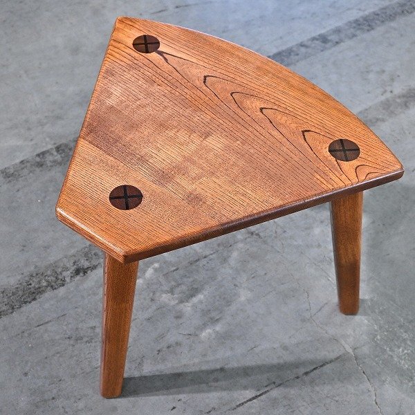 岩手岩泉 純木家具 スツール セン無垢材 椅子 三角 おむすび型 腰掛け 職人 栓 リビング 作業場 玄関_BC工房 浜本工芸 柏木工 飛騨 蔵