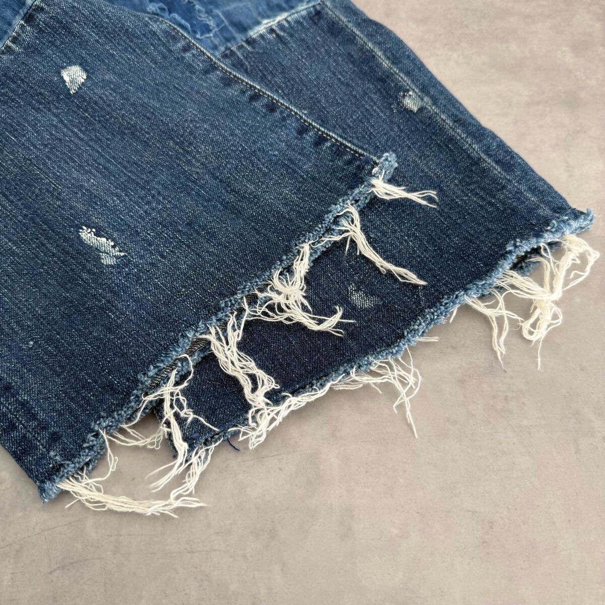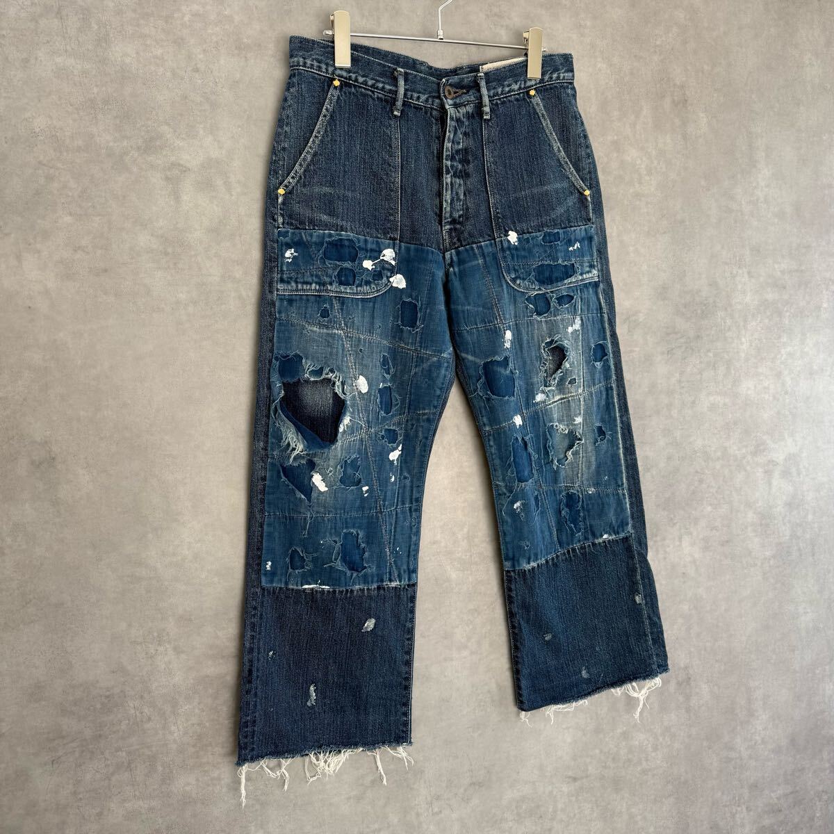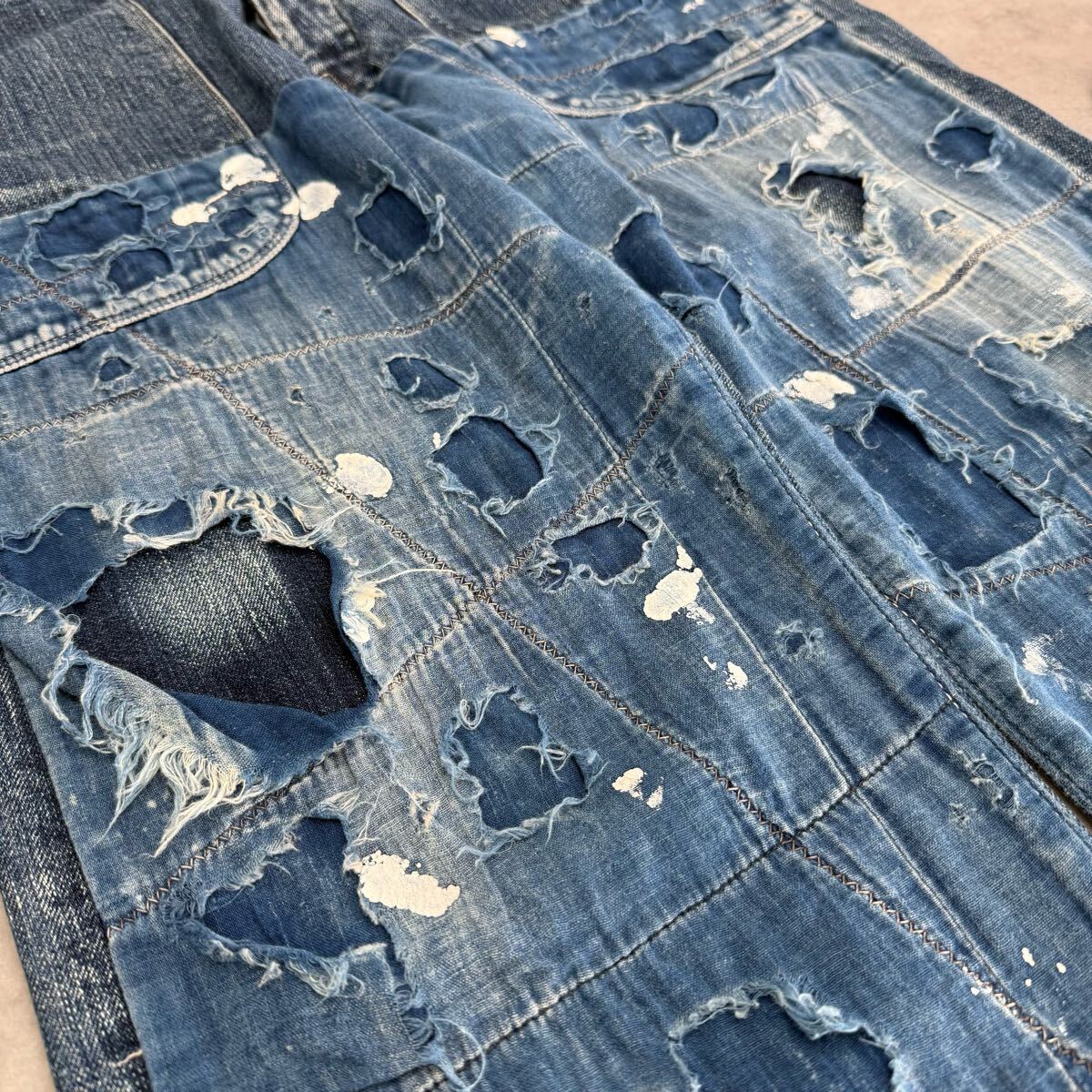 襤褸加工の風合いは抜群で、ダメージやペンキ飛びがありとても雰囲気ある1着。