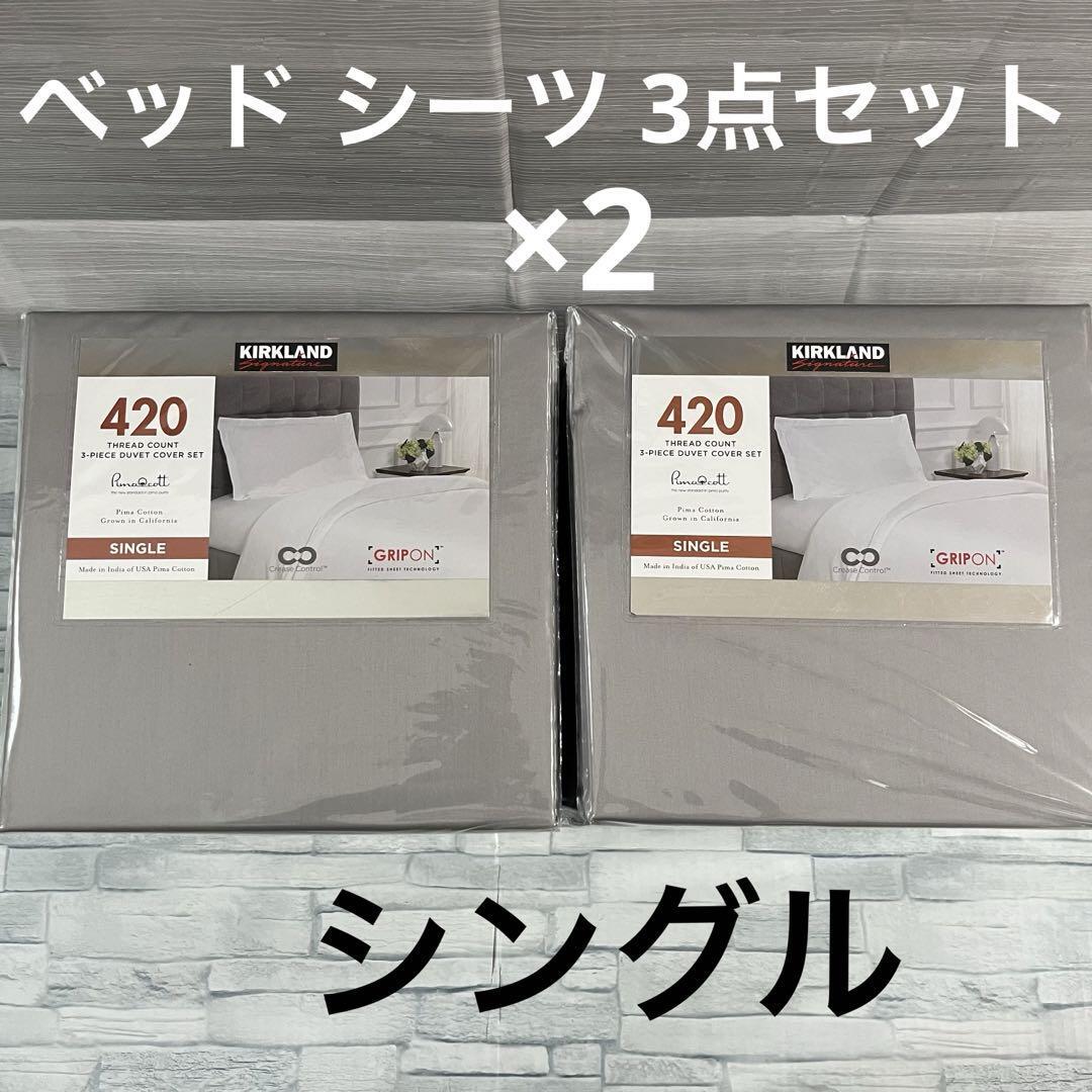 ベッド シーツ 3点セット シングルサイズ グレー ×2個