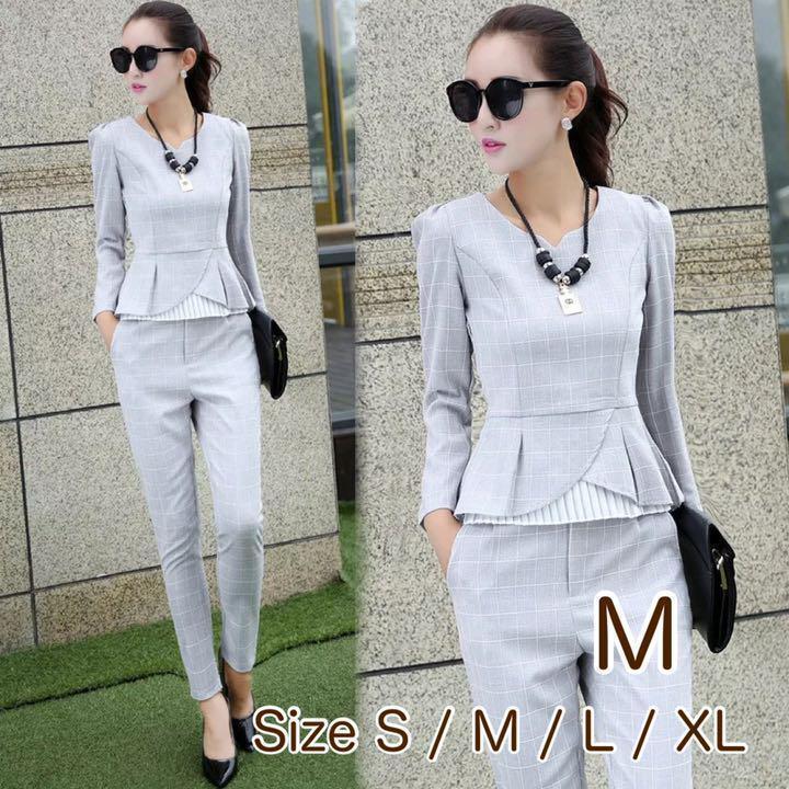 婦人用 チェック柄フォーマルパンツスーツ セットアップ