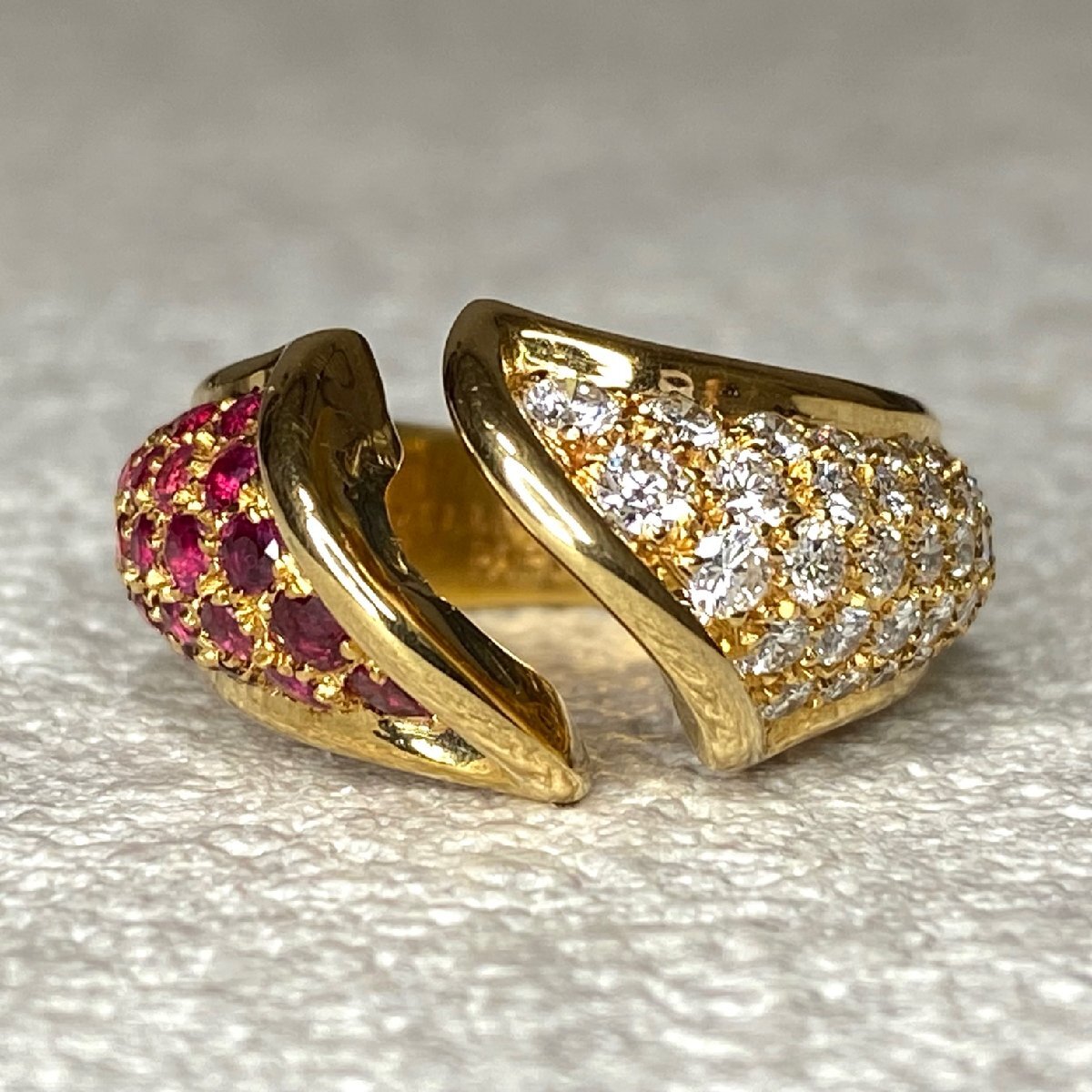 ☆【KJC】18K MELLERIO dits MELLER/メレリオ・ディ・メレー ダイヤ /ルビー 1.20、0.78 刻印 リング 指輪 サイズ約12.5~13くらい | ||