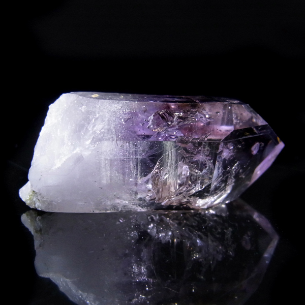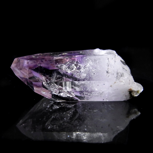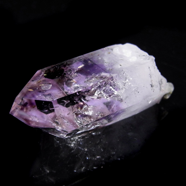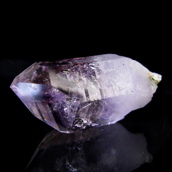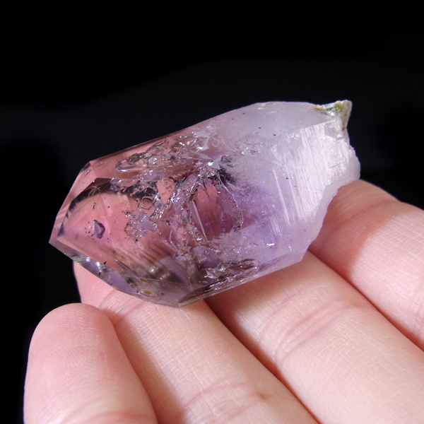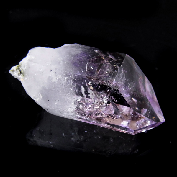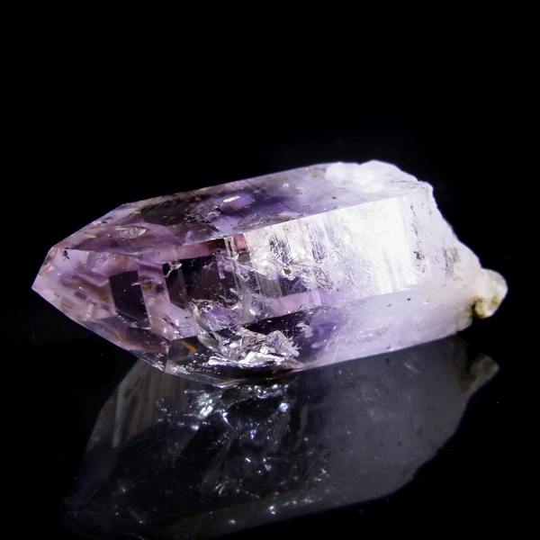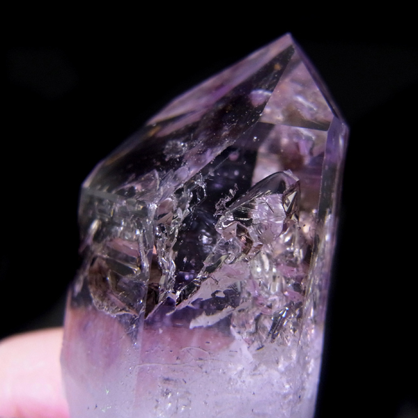 有名なナミビアのブランドバークから少し離れたところの新たな採掘場であるゴボボセブ産のアメジストのポイントです。ブランドバークに負けないくらい、瑞々しく透明感のあるアメジストがよく産出されます。非常に透明度が高く、奥の方にレインボーを確認、ファントム、レムリアンなどもあり、いろいろな表情を見せてくれるとてもきれいな一点です。