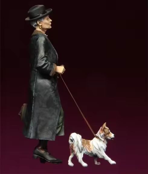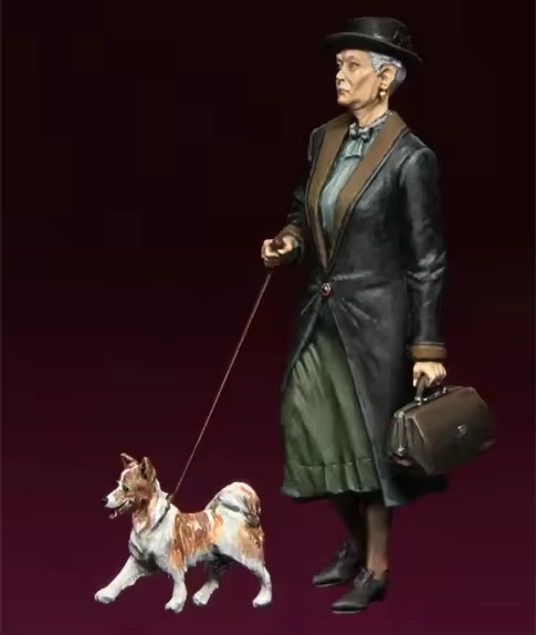 ■ 1/35 犬 散歩 貴婦人 おばあさん レトロ 日常 景観 製作 樹脂 模型 ■ 未塗装 未組み立て レジン フィギュア TR X809