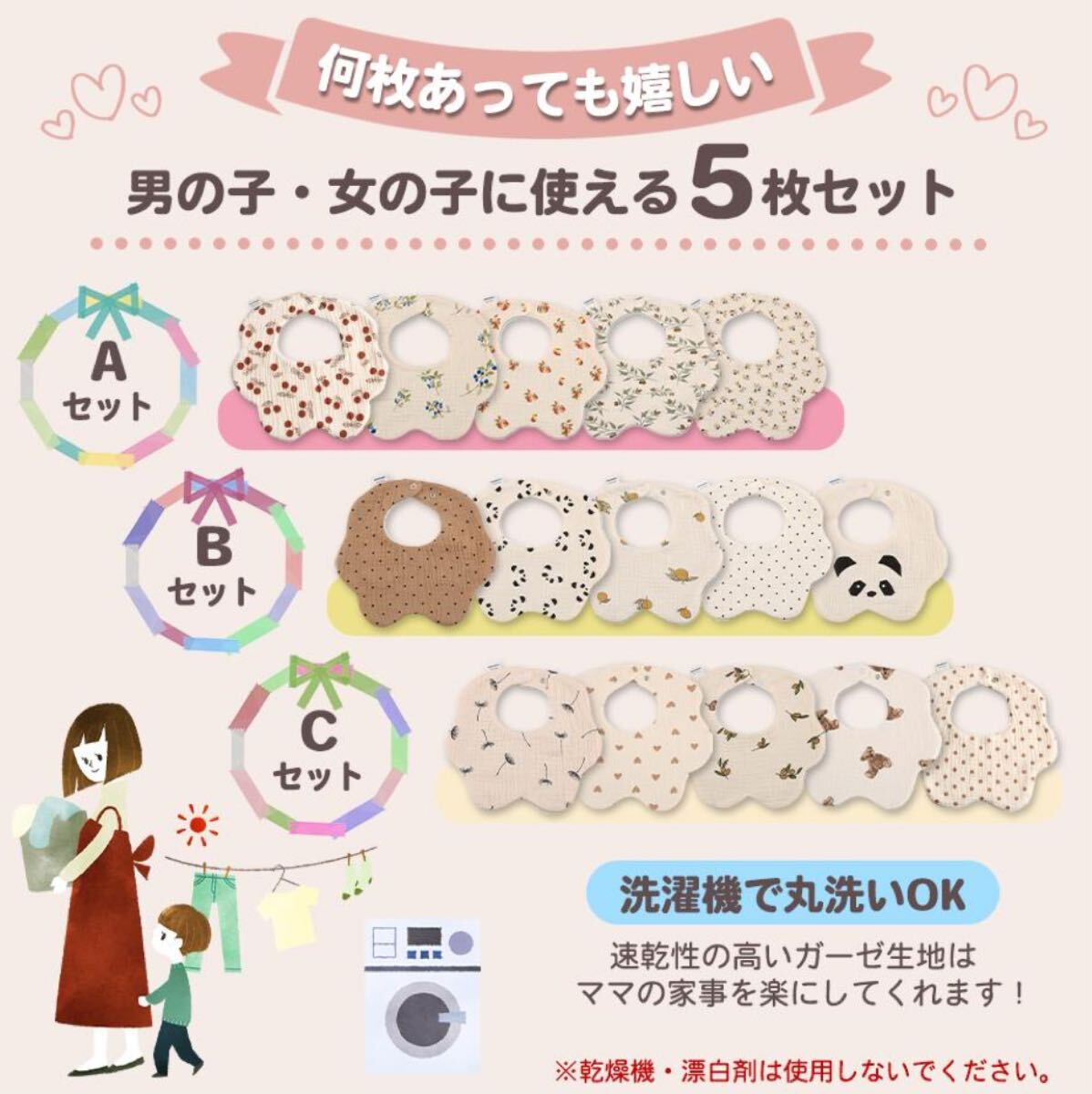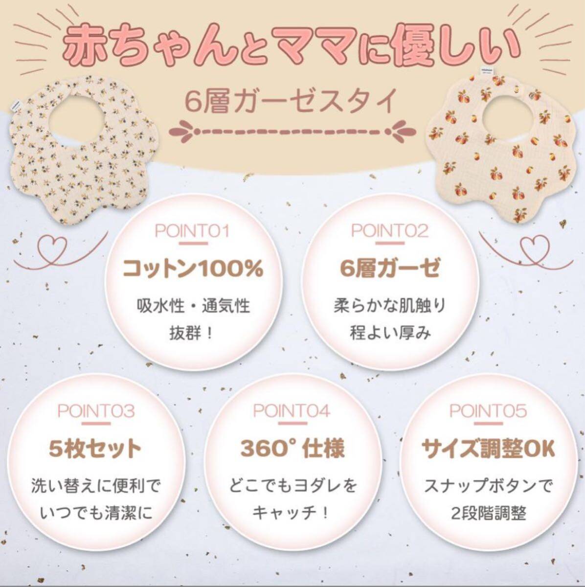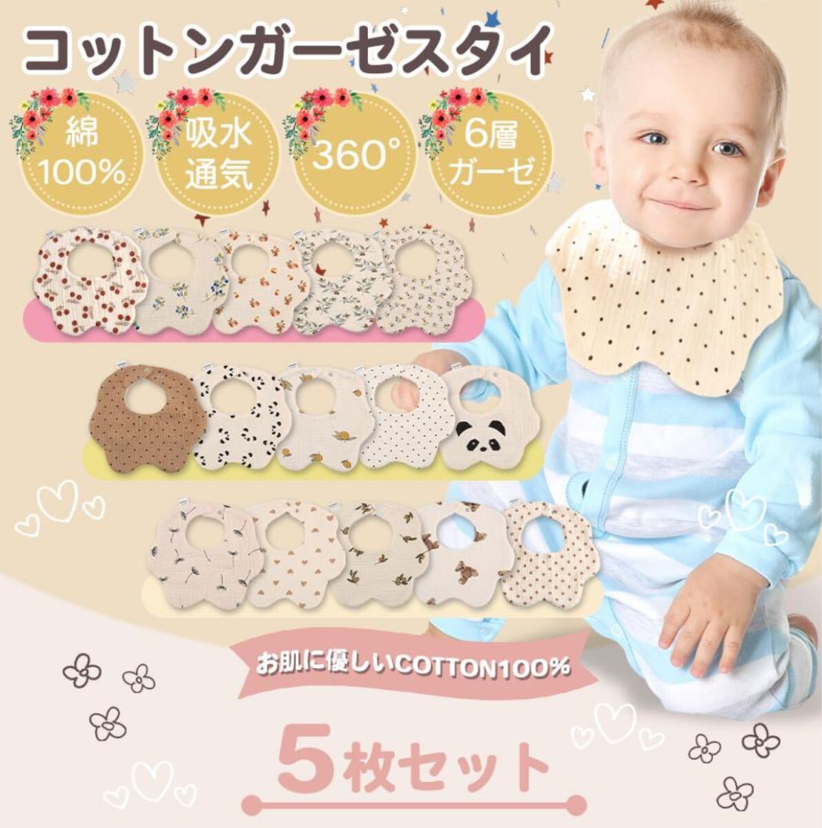 ガーゼ素材の可愛らしさが溢れる、5枚セットの魅力的アイテム♪