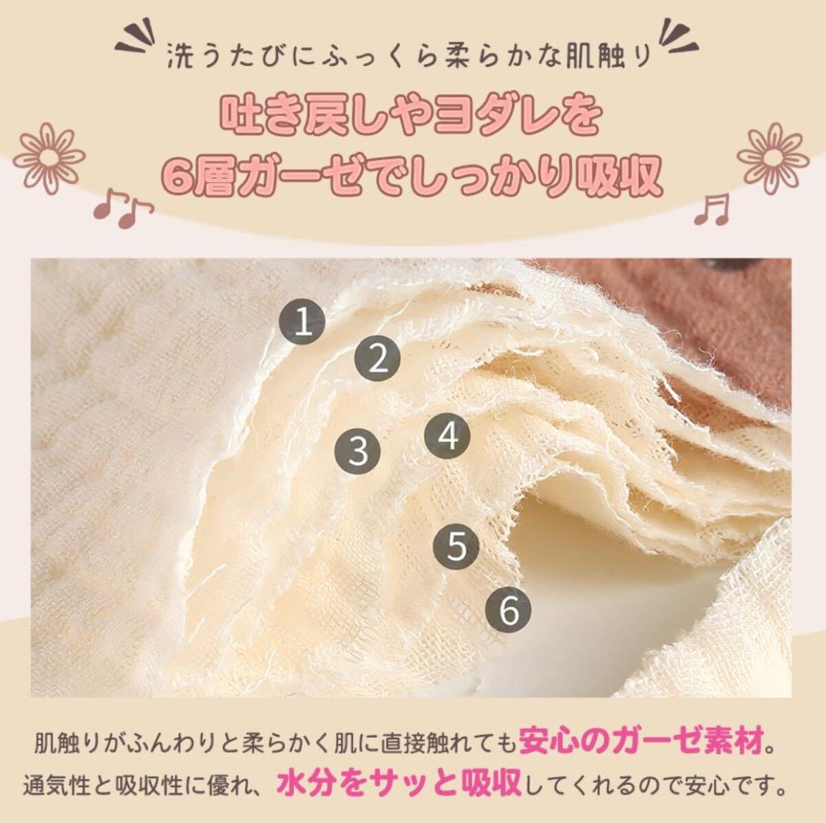 ◎6重のガーゼがしっかりと水分を吸収。