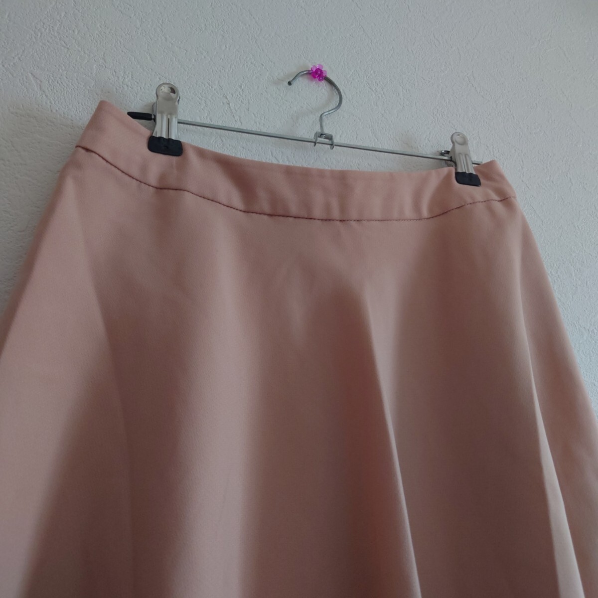 このスカートは柔らかいピンク色で、春や夏にぴったりの明るい印象を与えます。