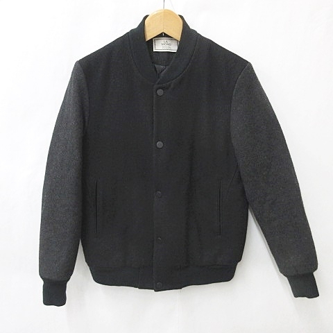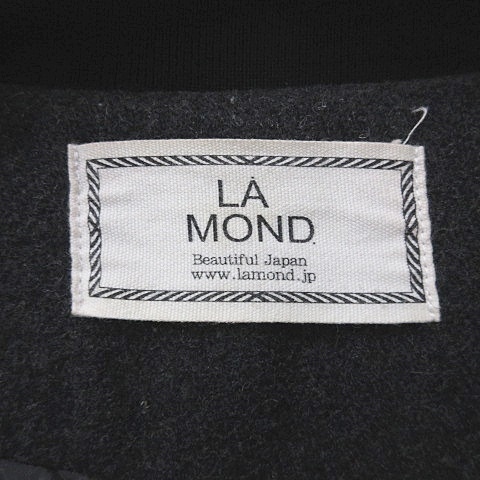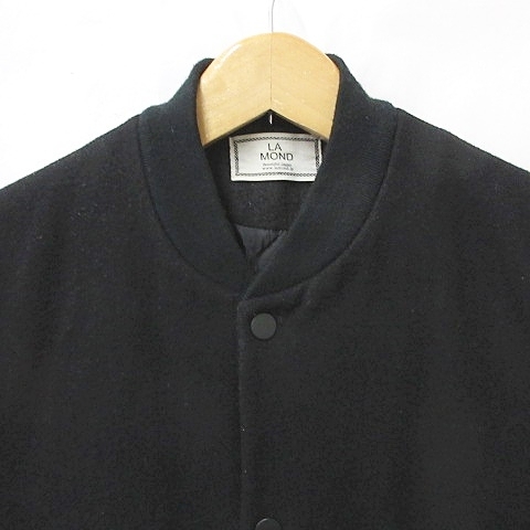 ラモンド LA MOND ジャケット ブルゾン スタジャン 中綿 リブ ウール混 黒 グレー ブラック M メンズ