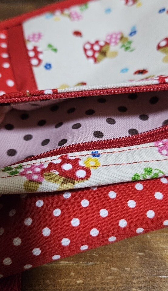 生地全体に接着芯を貼って、キルト綿を挟んで縫ってますので、ほどよくしっかりした作りになってます。