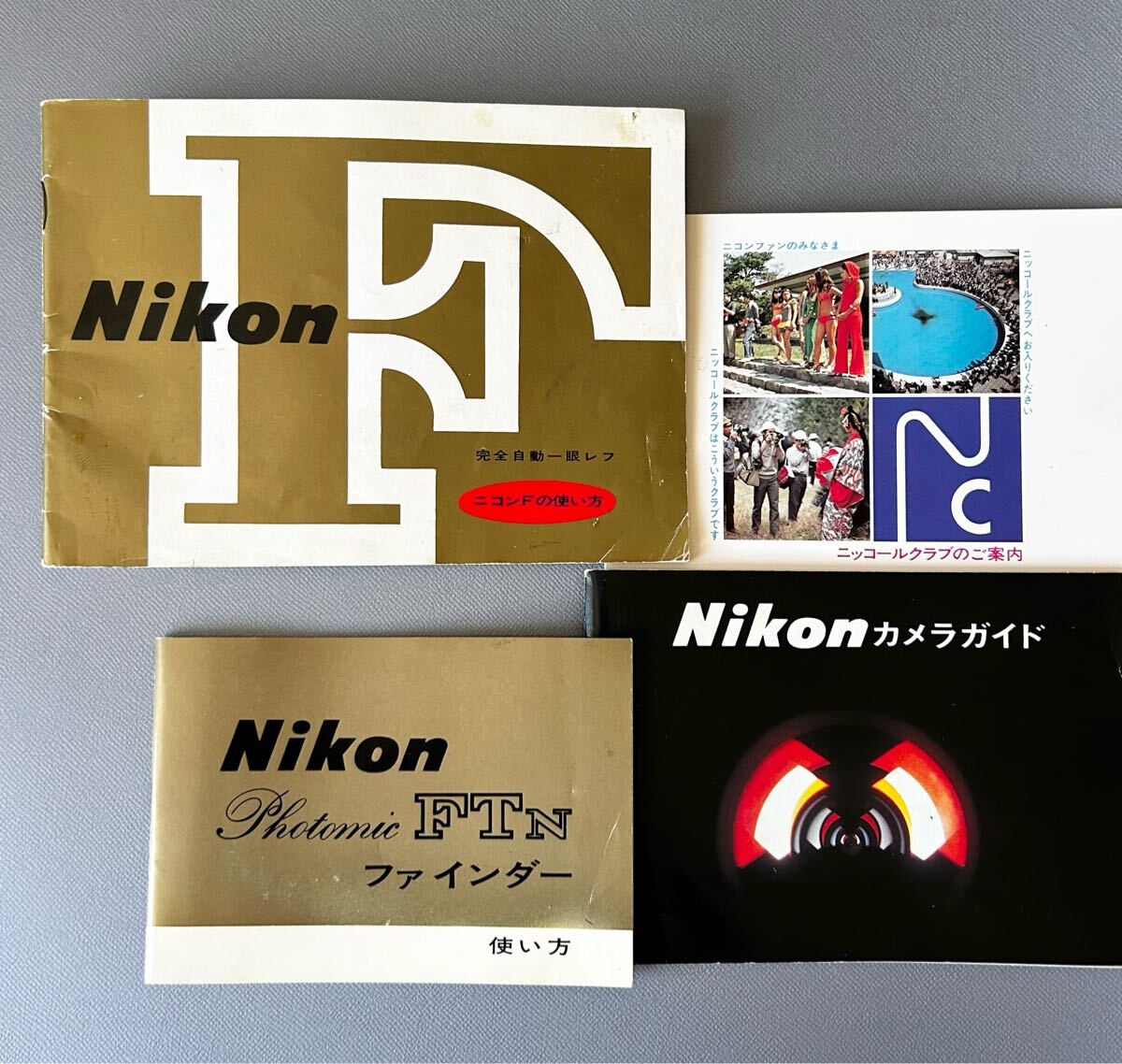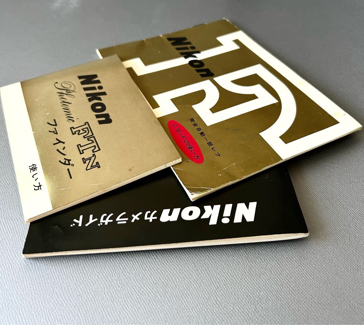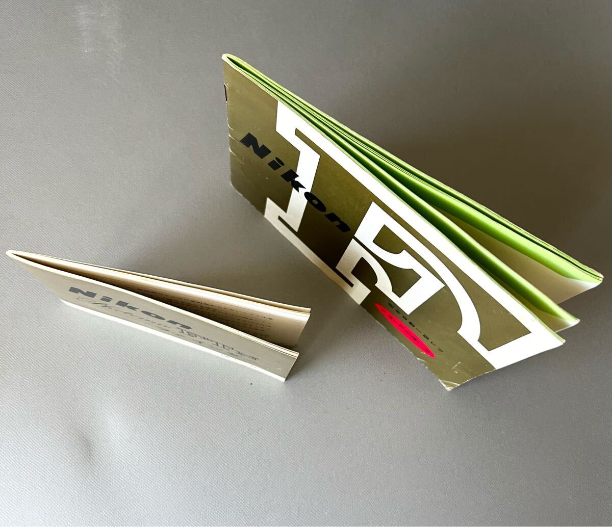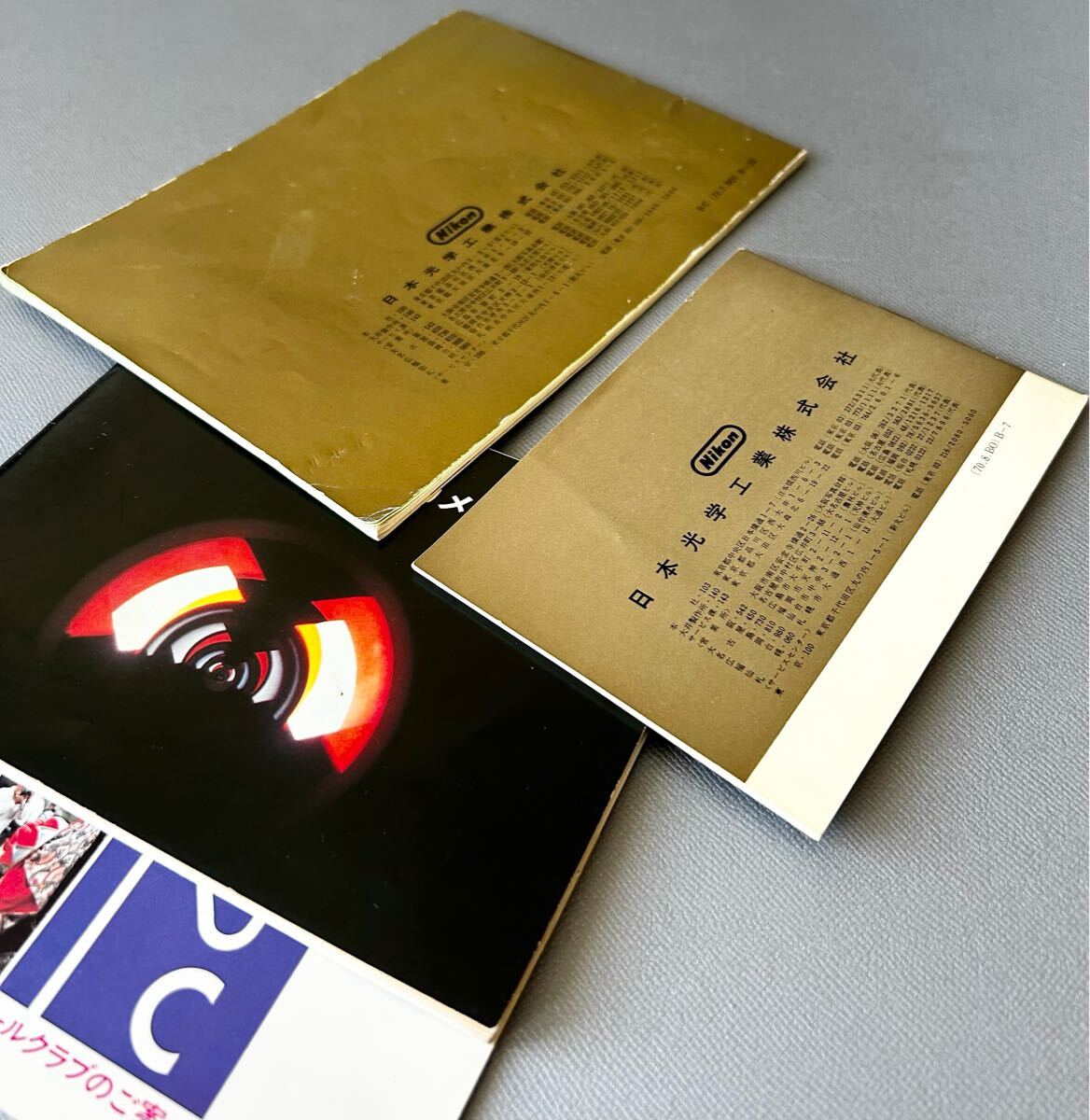 ニコン F の使用説明書(正規版・金表紙 ) 中古良品二冊セットです。当時のニコンパンフレットも二冊付属しております。