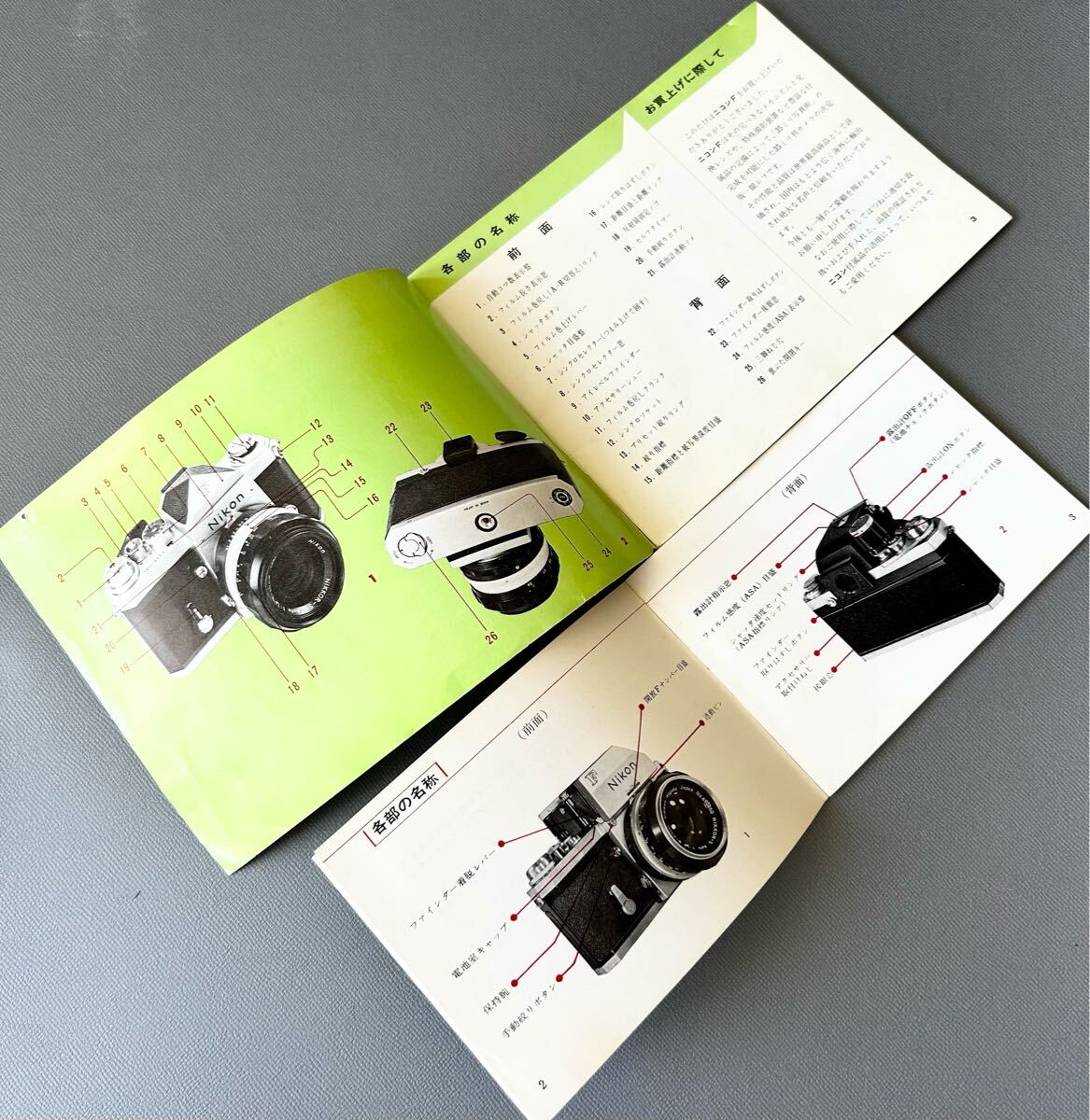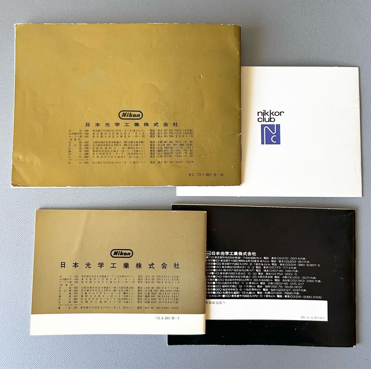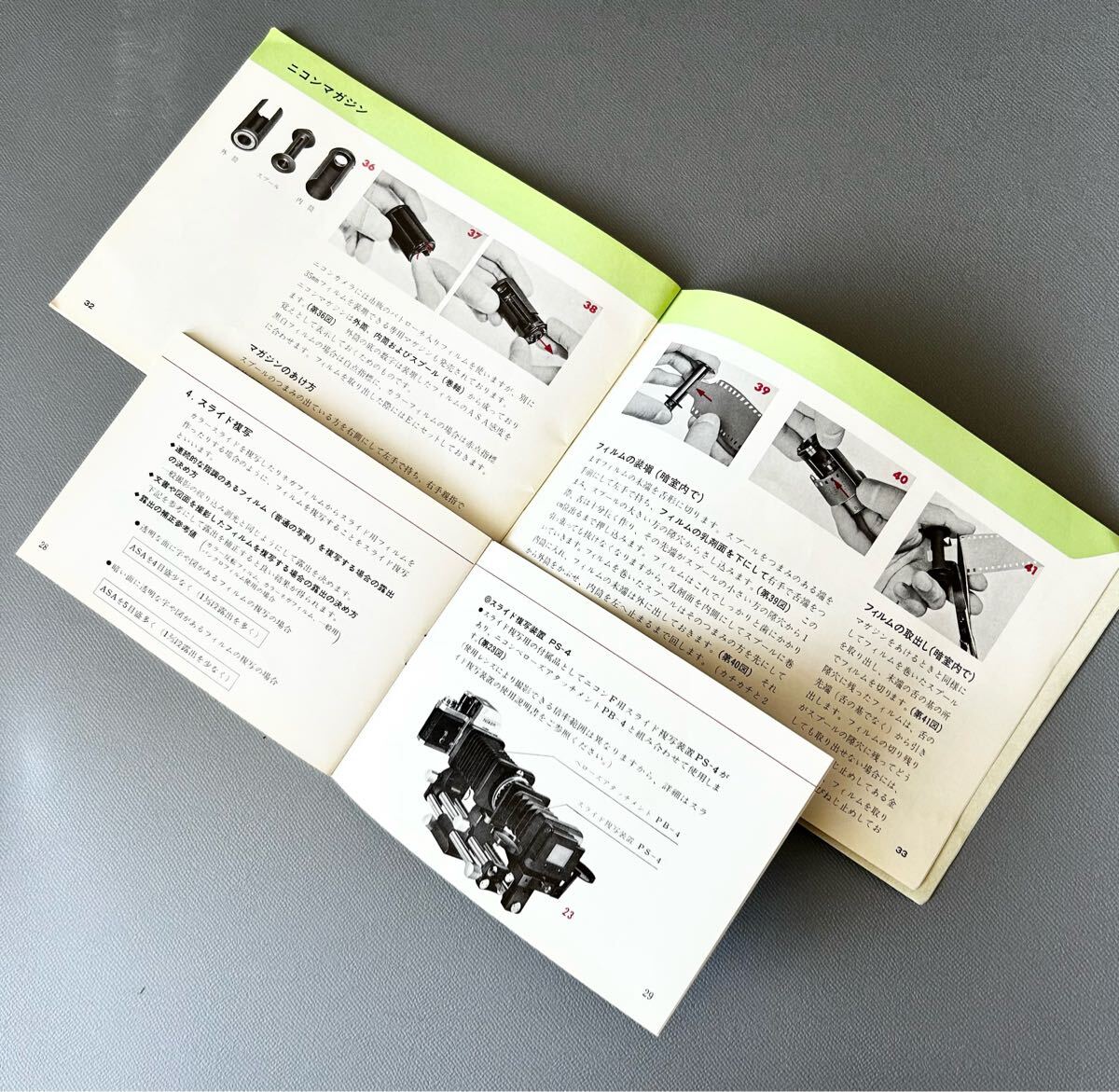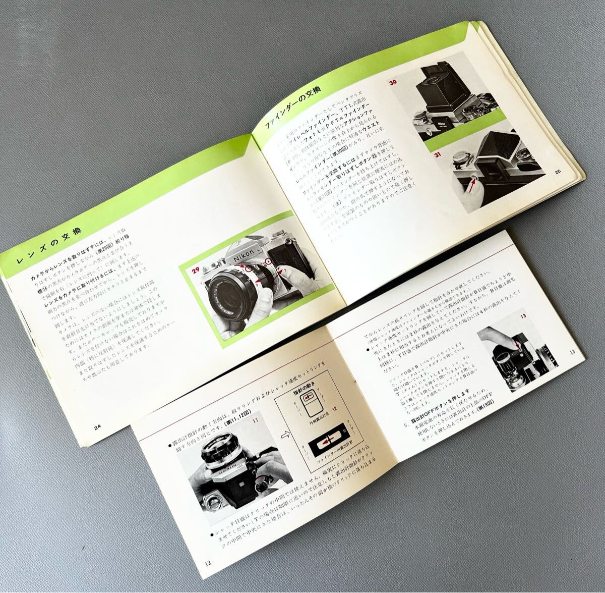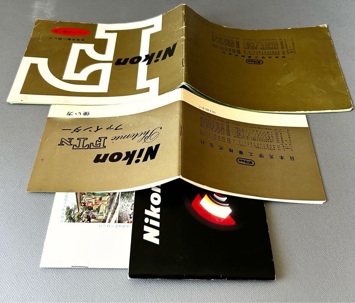 ニコン F の使用説明書(正規版・金表紙 ) 中古良品二冊セットです。当時のニコンパンフレットも二冊付属しております。