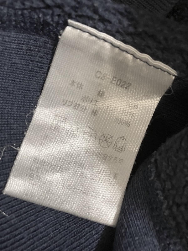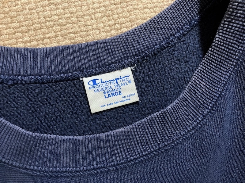 ■状態は、全体的にネイビーの色合いが淡くなっていて、首回りのリブに赤っぽい色あせがあったり、内側には毛玉ができていたり、素材がくったりしていたり、着用感を感じます。