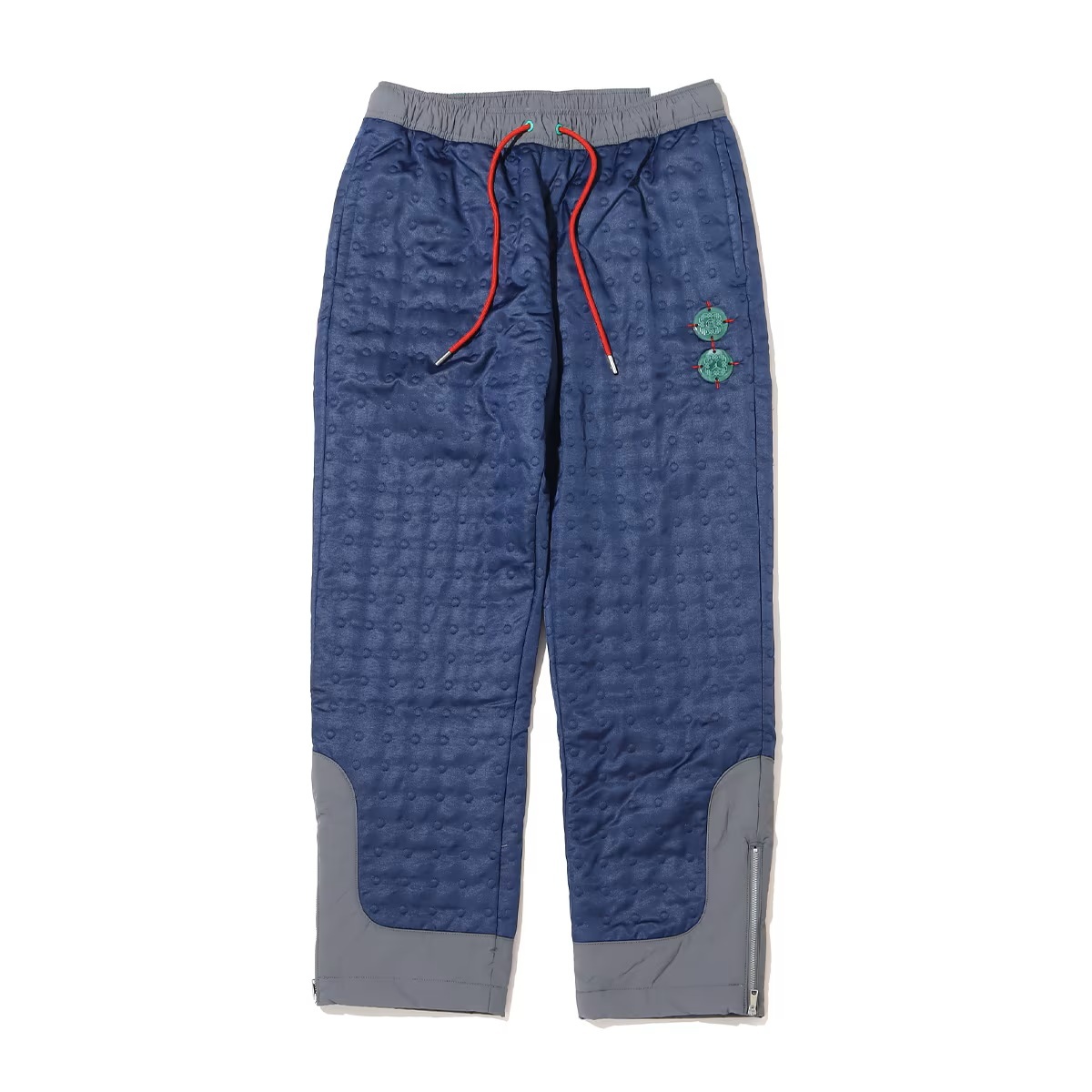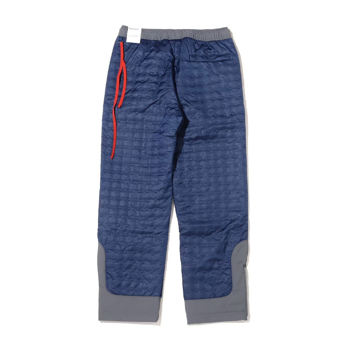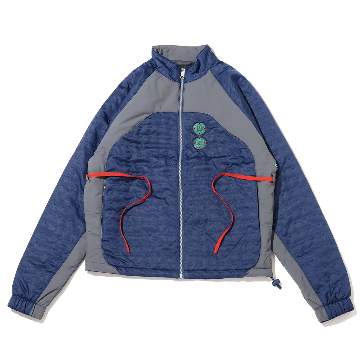 撥水加工を施した織り生地にキルト模様と化繊中綿を使用し、軽量で暖かさを提供。