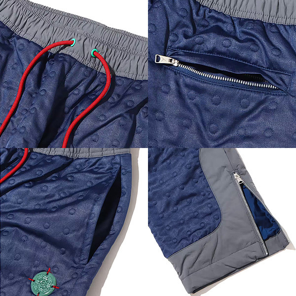 ゆったりとした快適なフィット感に、幸運の象徴である翡翠のパッチなどのディテールが施されています。