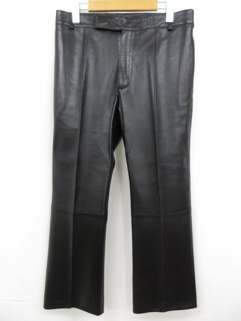 未使用 希少【dunhill ダンヒル】 最高級 羊革 ラムレザー ブーツカットパンツ (メンズ) size46R 本革 ブラック イタリア製 ◯33MPA3226◯