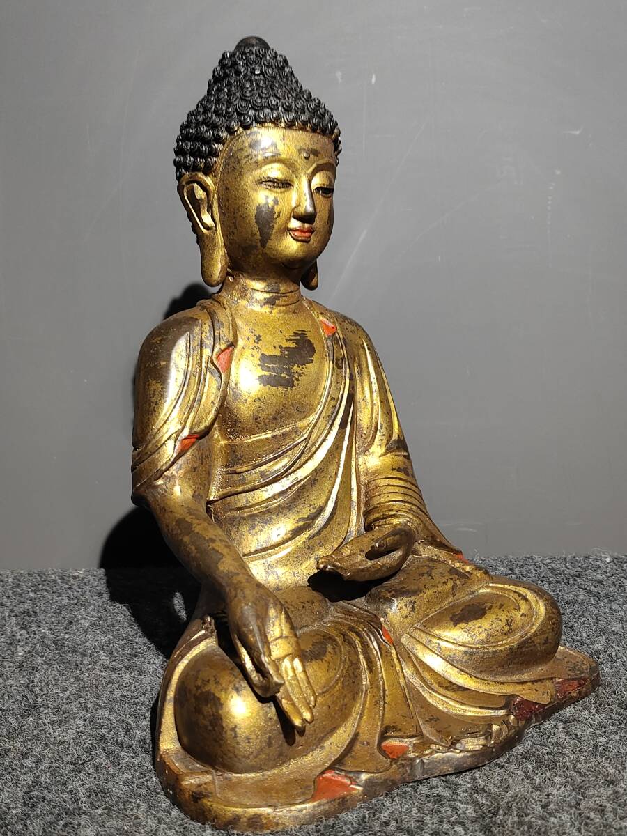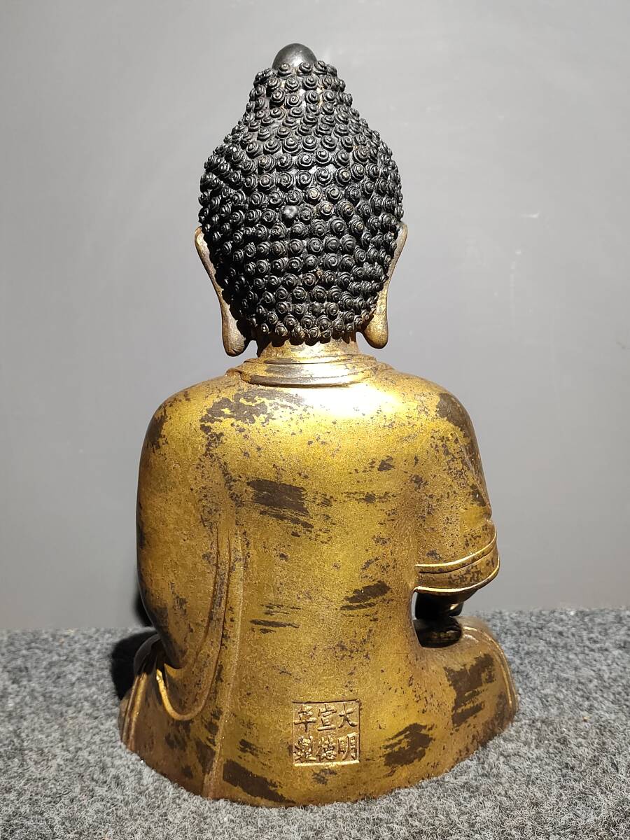 *珍品旧蔵* 明 宣德 純銅金佛像【釋迦牟尼佛】一尊造像 居家供奉佛像 唐物 中国古玩 仏教古美術 供養品 古置物 中国古美術 ZK0327