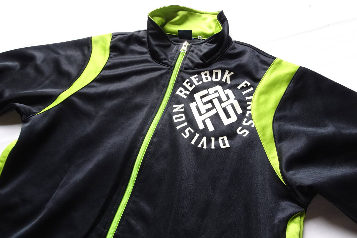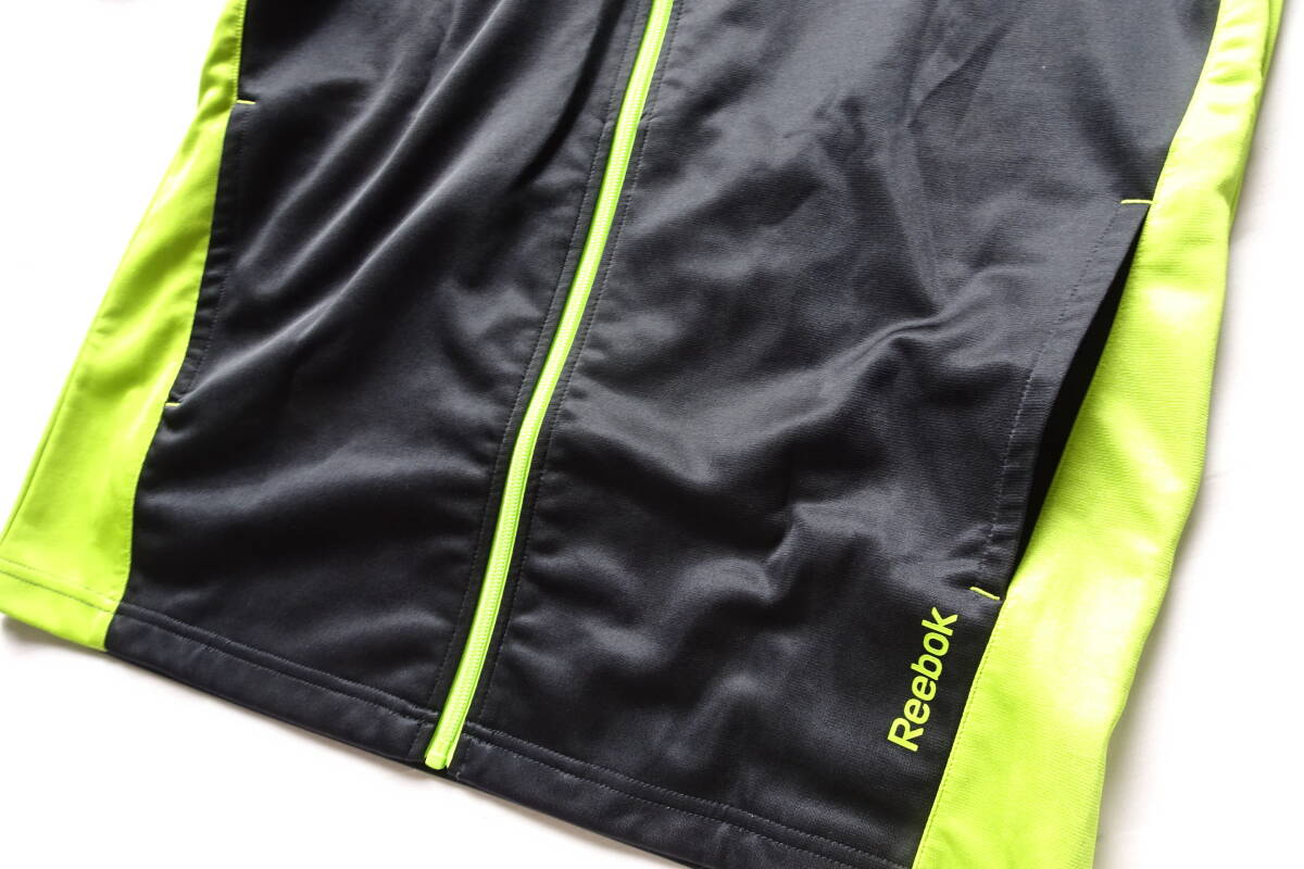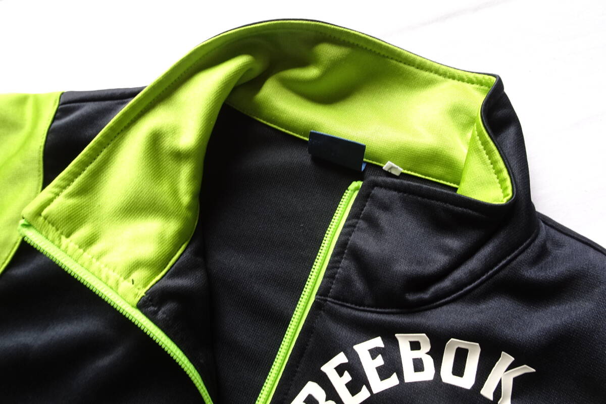 Reebok/リーボック/長袖トラックジャケット/ジャージ素材/前ジップアップ/ライムグリーン切替/濃紺/ダークネイビー/Lサイズ(3/27R7)
