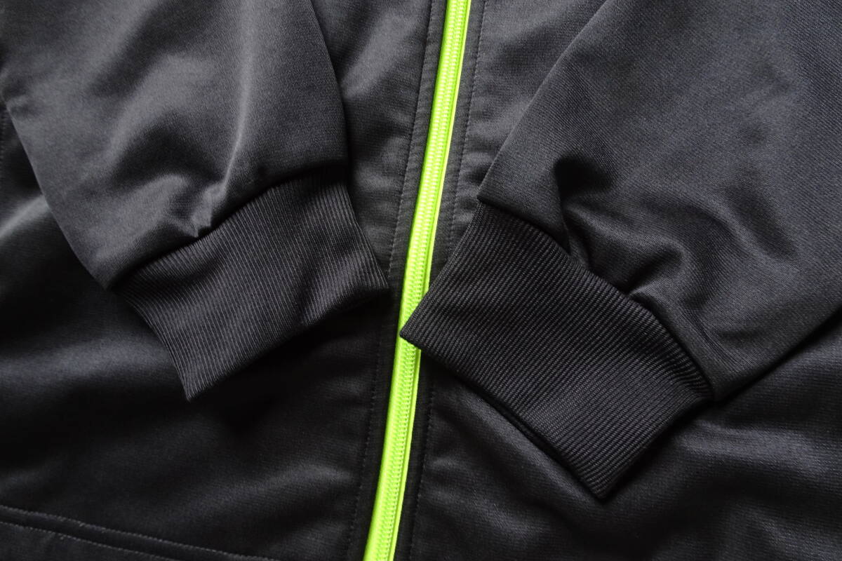 首ぐり内側、袖ぐり、身頃脇、ライムグリーン切り替え配色です。