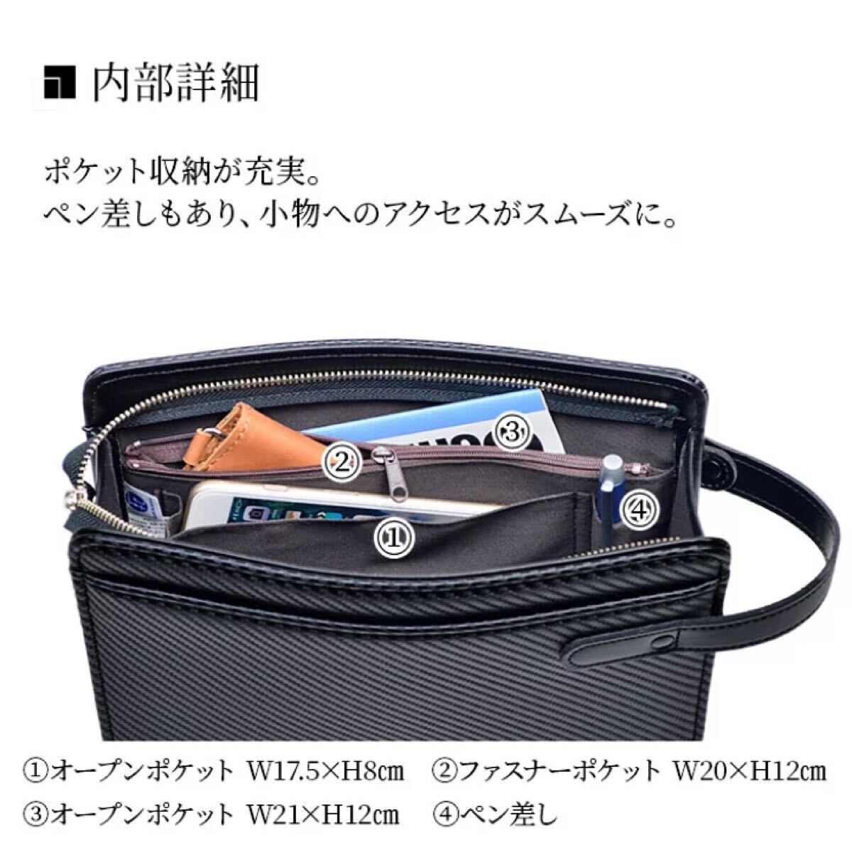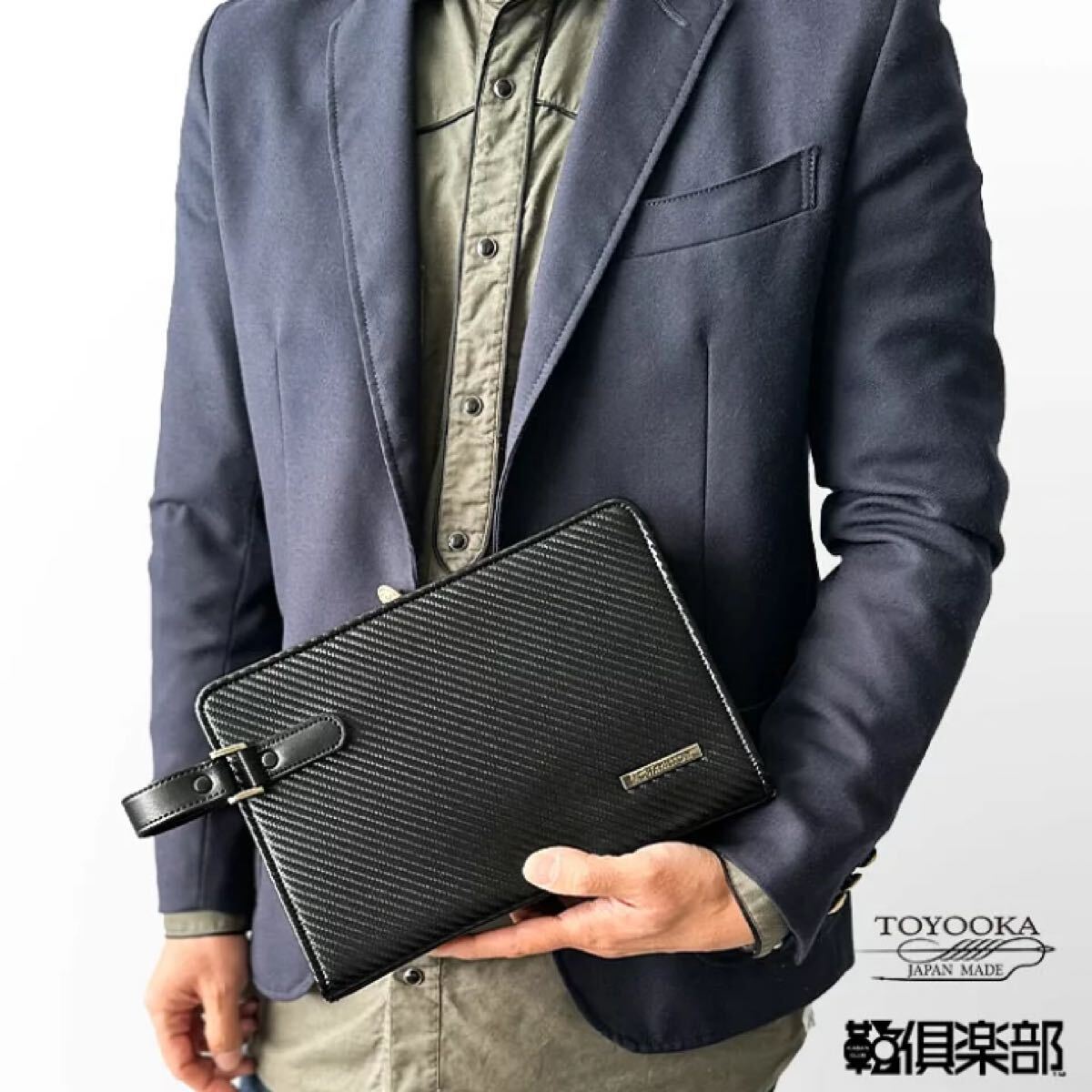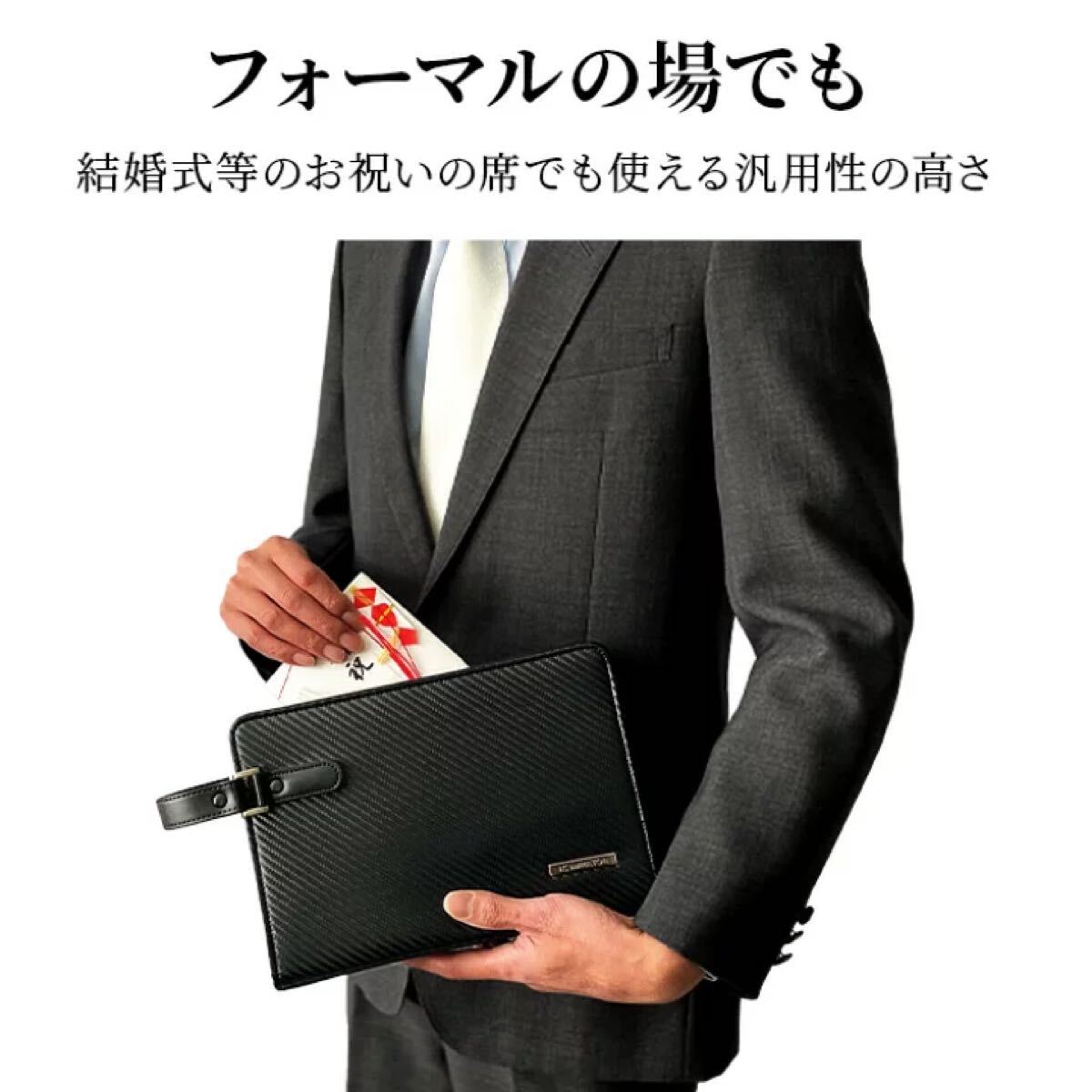 クラッチバッグ セカンドバッグ メンズ 日本製 豊岡製鞄 ハンドル ストラップ カジュアル フォーマル 軽量 カーボン調 J.C HAMILTON 25962