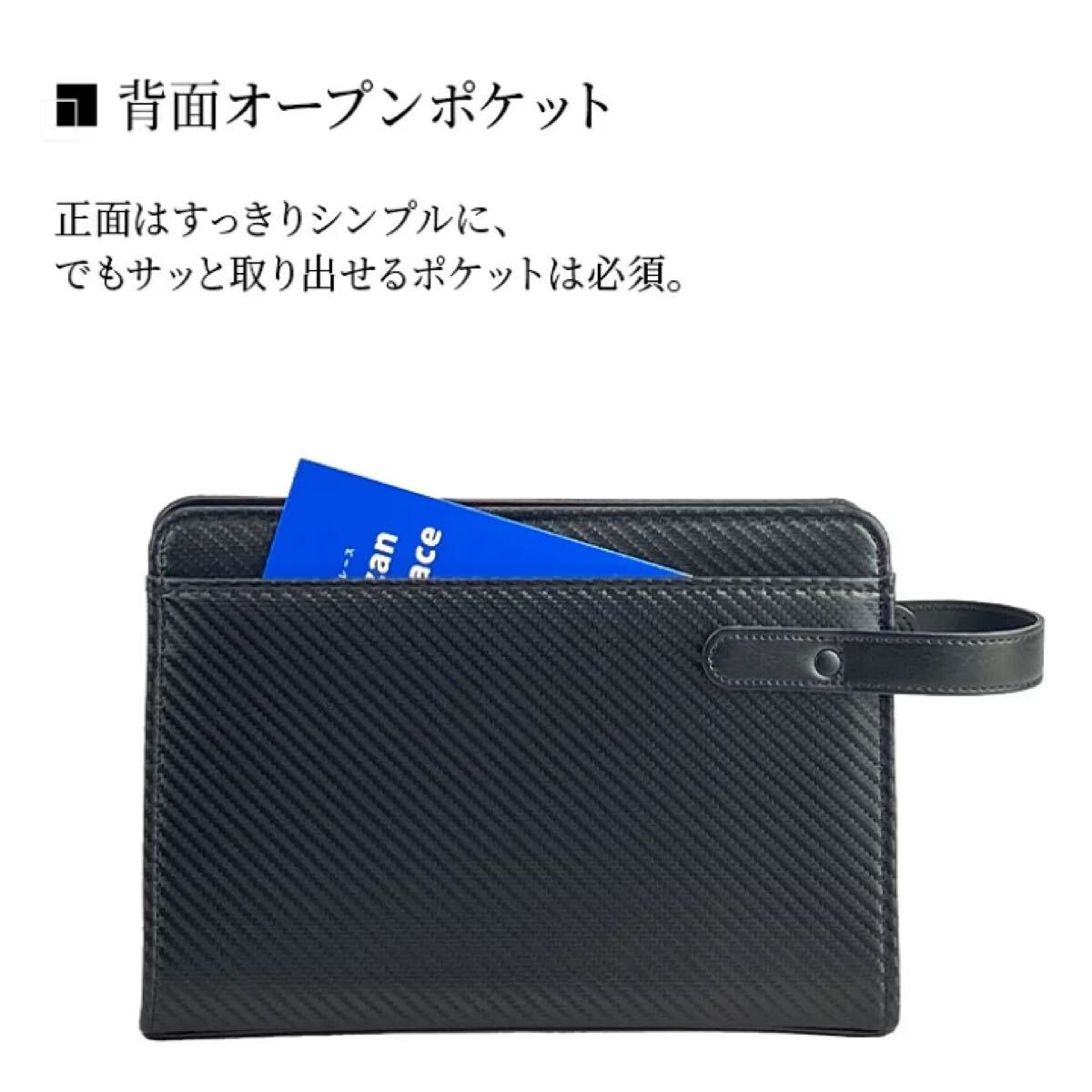 ◆ スポーティなカーボン調の生地感が個性的なクラッチバッグ。