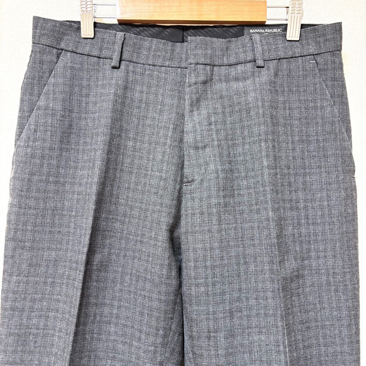 BANANA REPUBLICのスラックスパンツです。柔らかく肌触りの良い素材で仕立てられたノータック仕様のパンツになります。程よい厚みでオールシーズン対応可能です◎状態も良いのでおすすめです^ ^